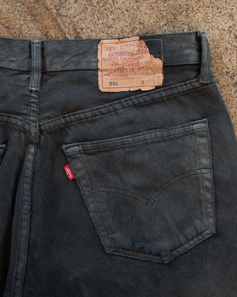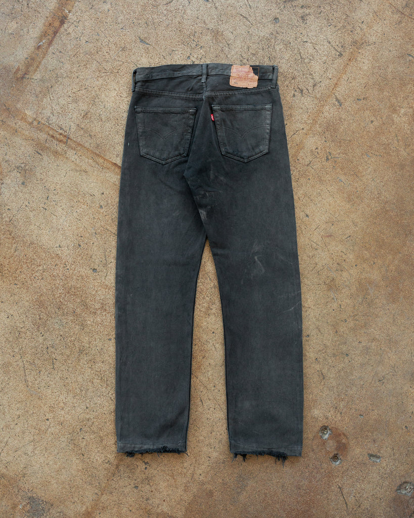 Levi's 501 Faded Blue Black Distressed Jeans - 1990s