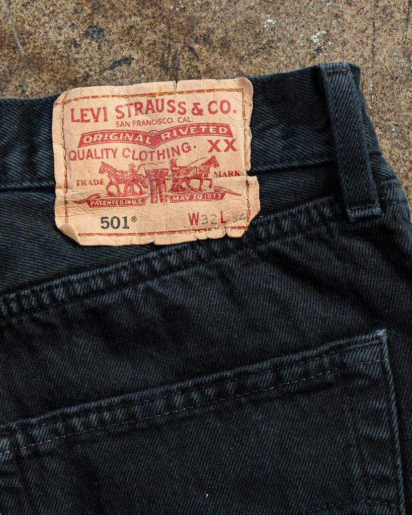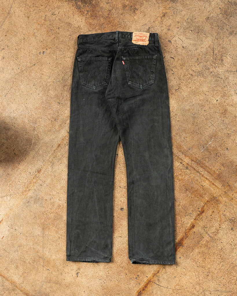 Levi's 501 Faded Blue Black Distressed Jeans - 1990s