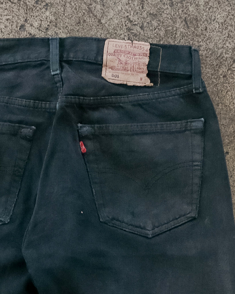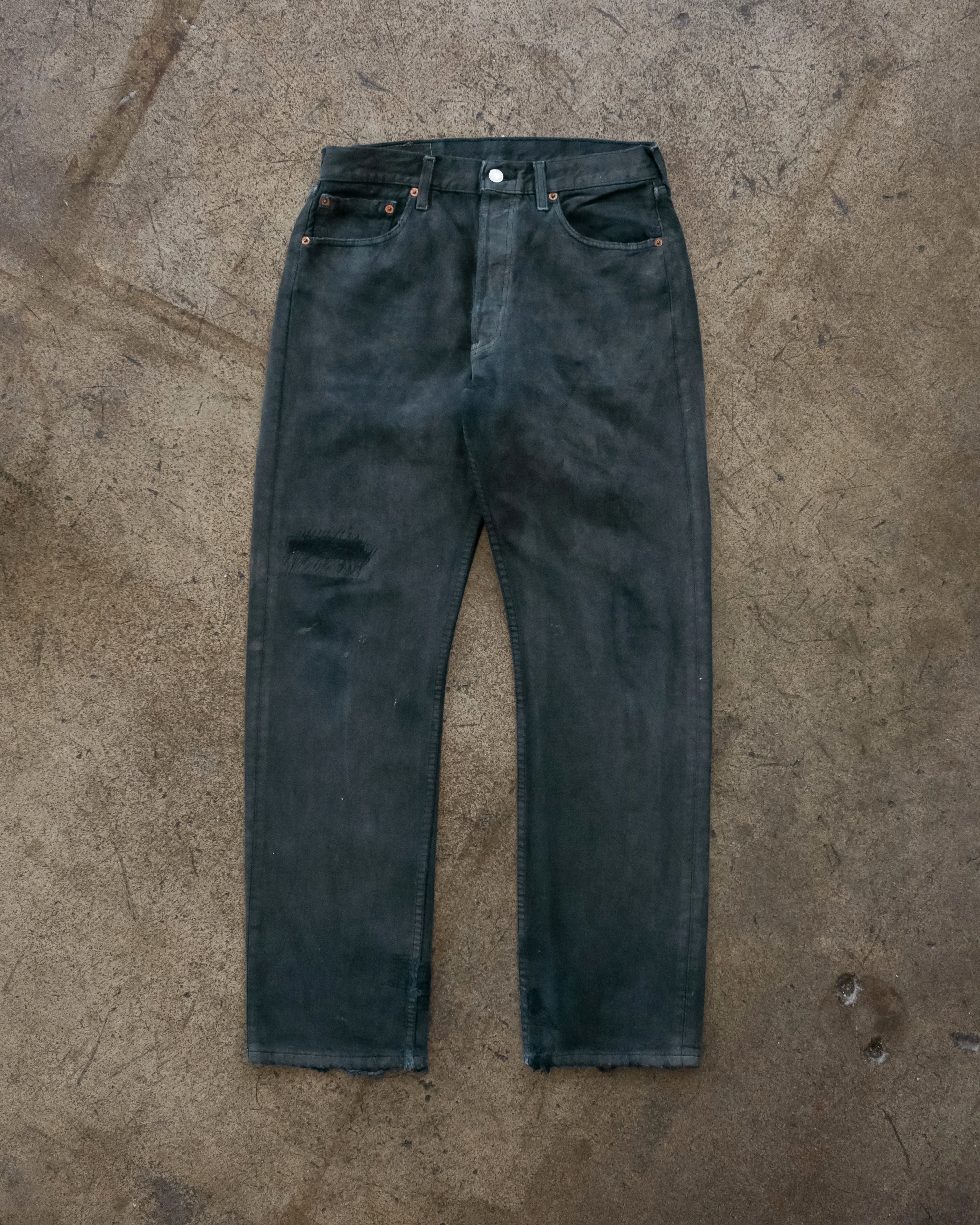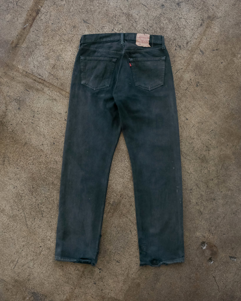 Levi's 501 Faded Blue Black Repaired Jeans - 1990s