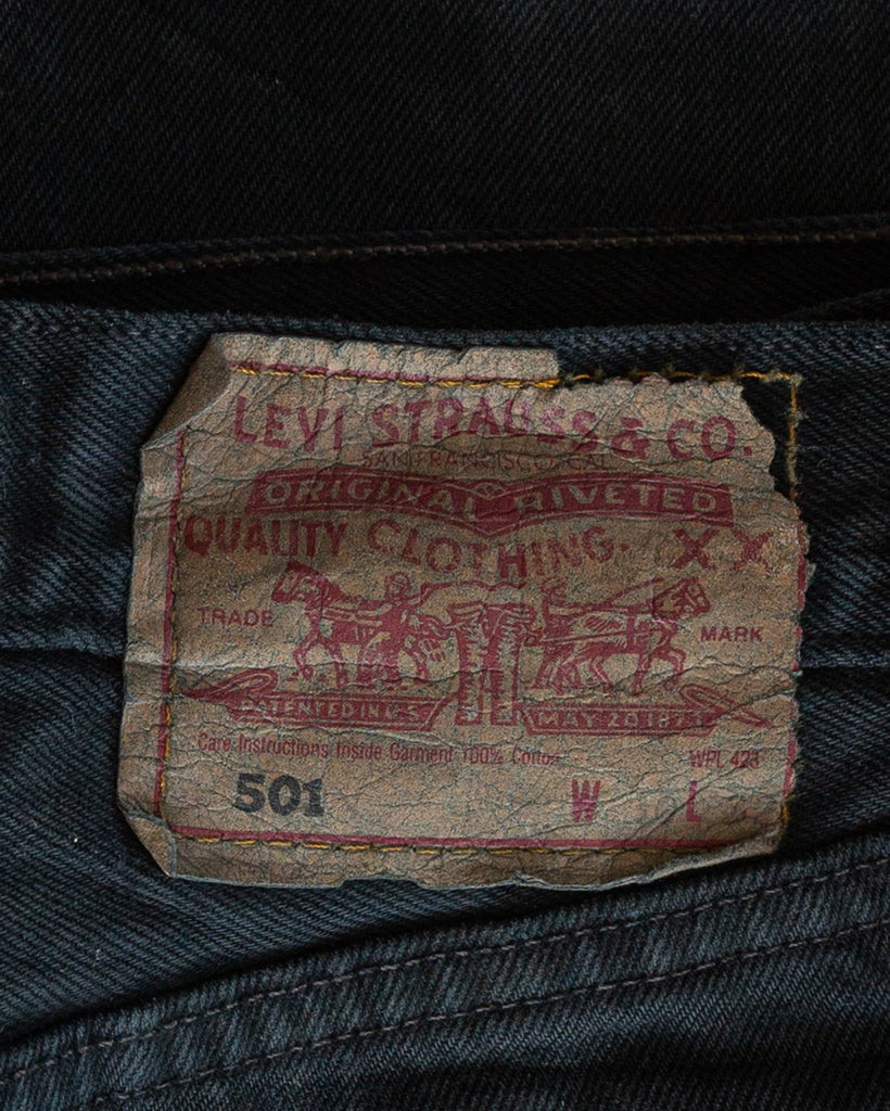 Levi's 501 Faded Blue Black Released Hem Jeans - 1990s