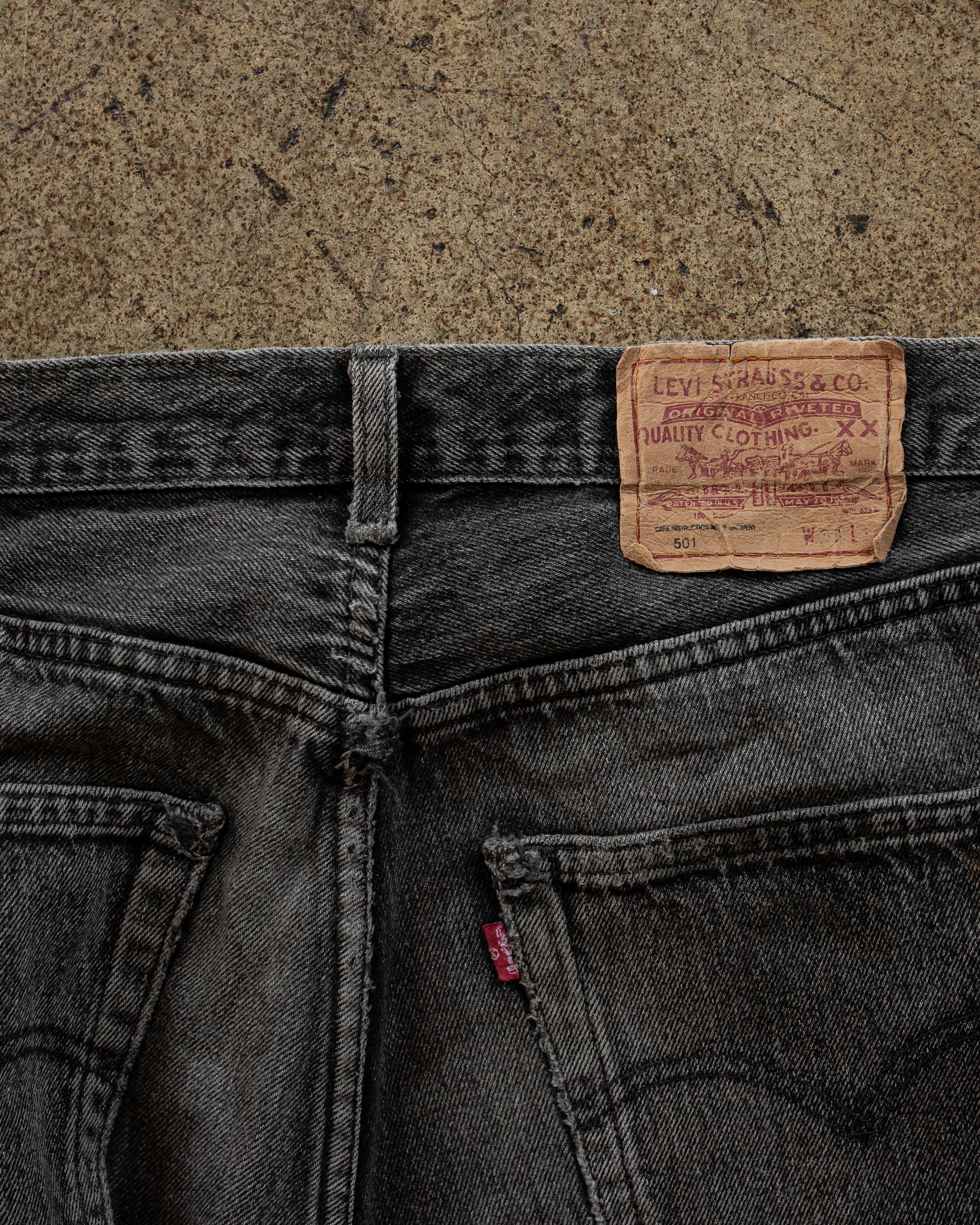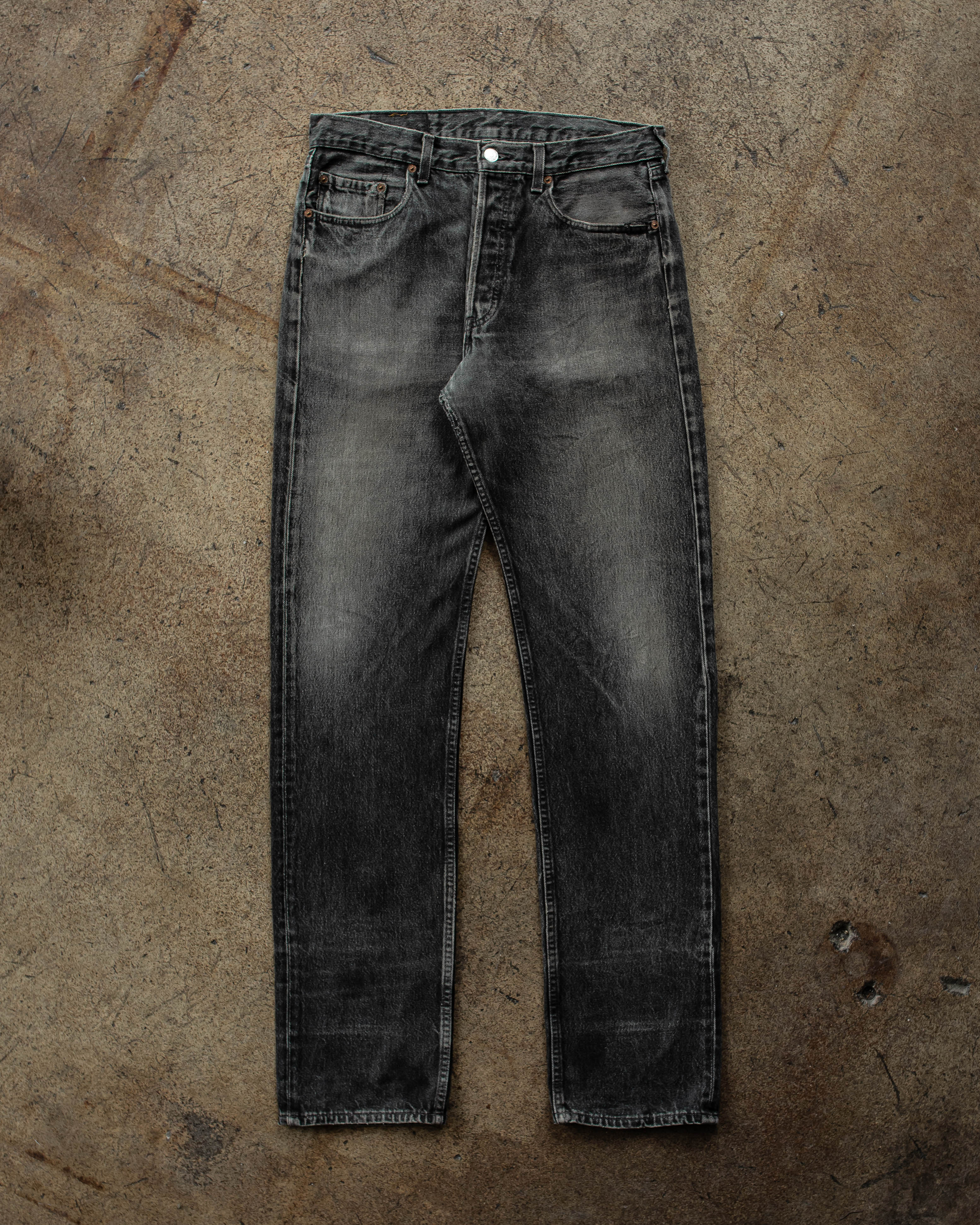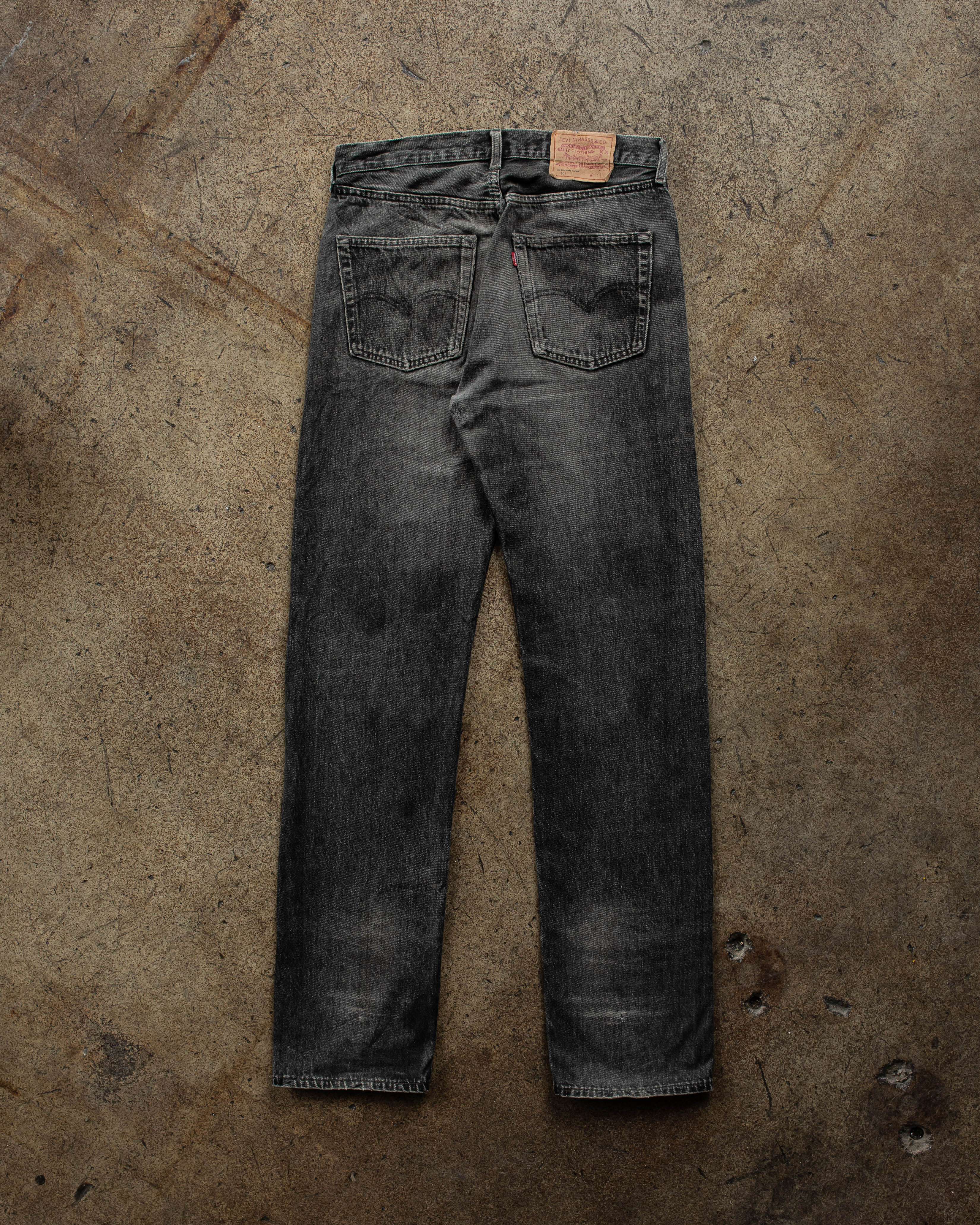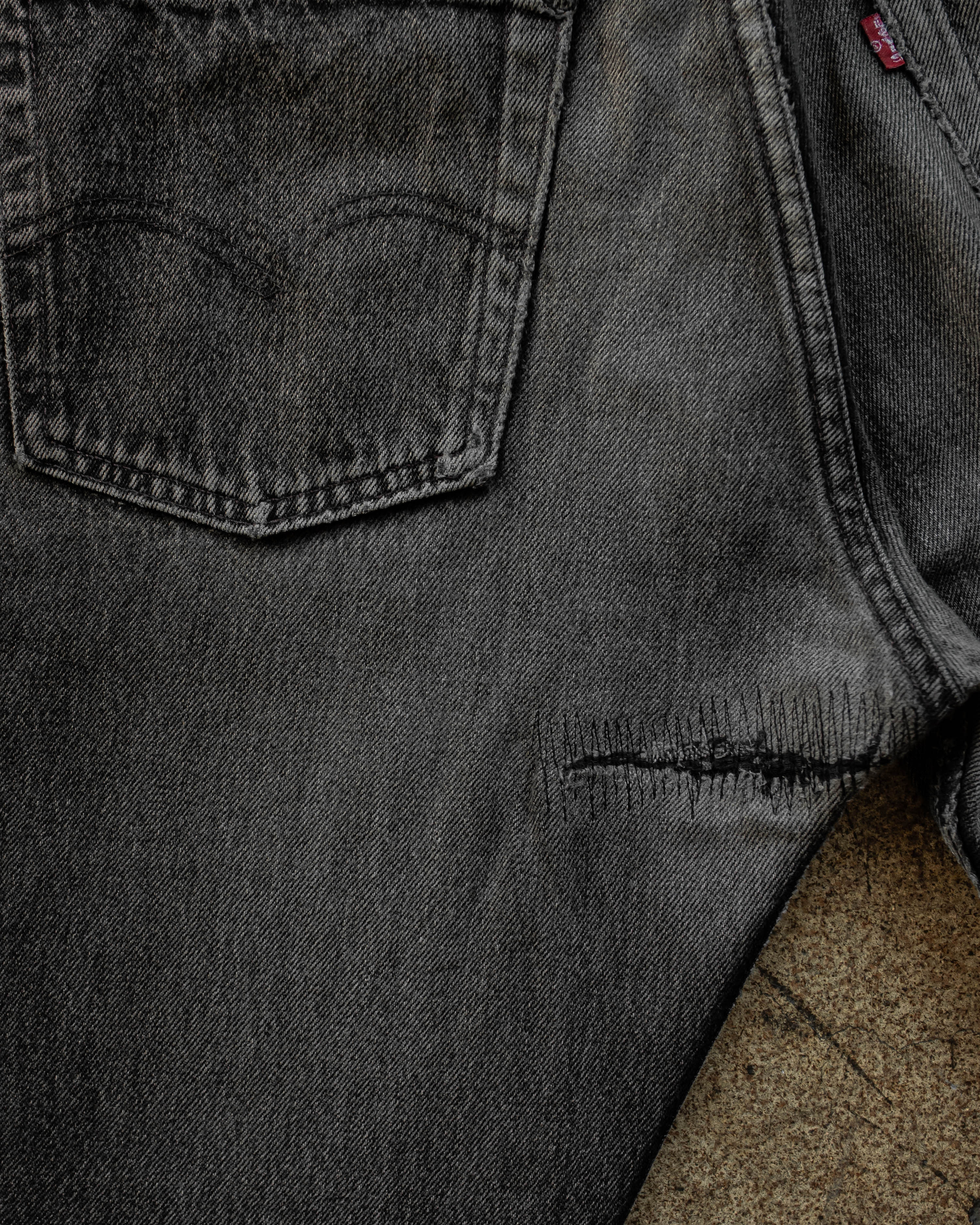Levi's 501 Faded Charcoal Repaired Jeans - 1990s