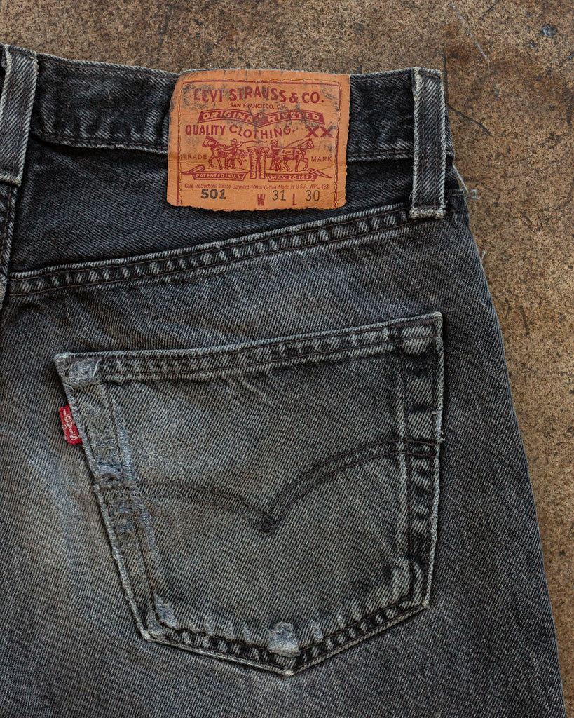 Levi's 501 Faded Charcoal Released Hem Distressed Jeans - 1990s