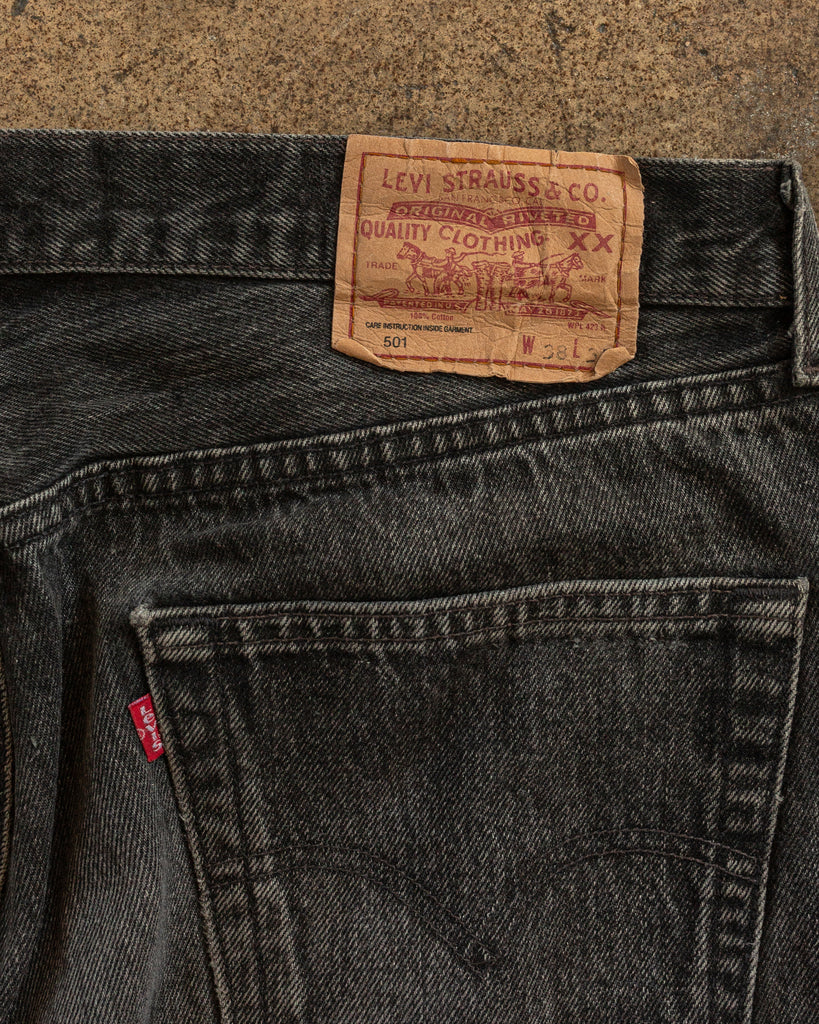 Levi's 501 Faded Charcoal Repaired Jeans - 1990s