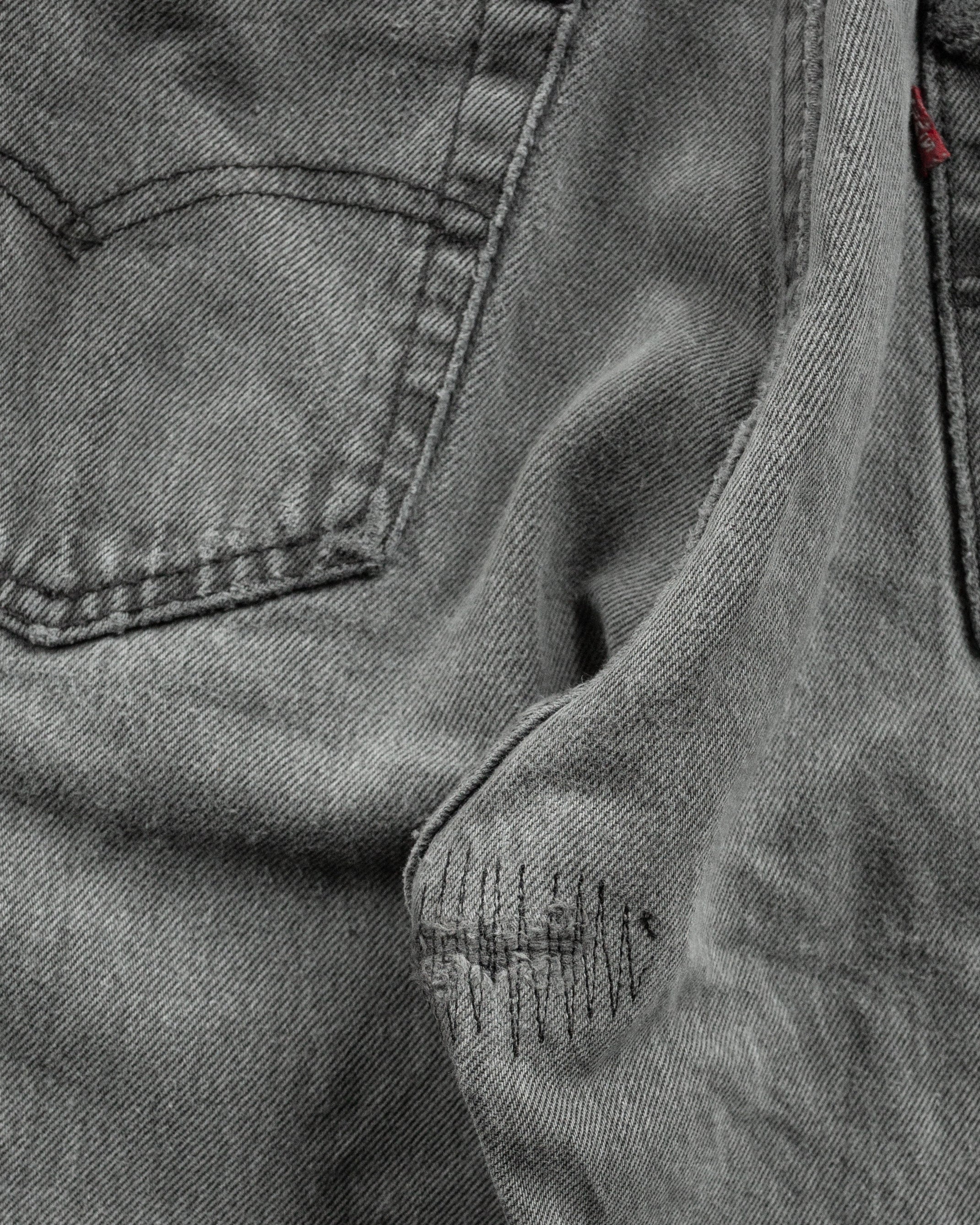 Levi's 501 Faded Grey Repaired Jeans - 1990s