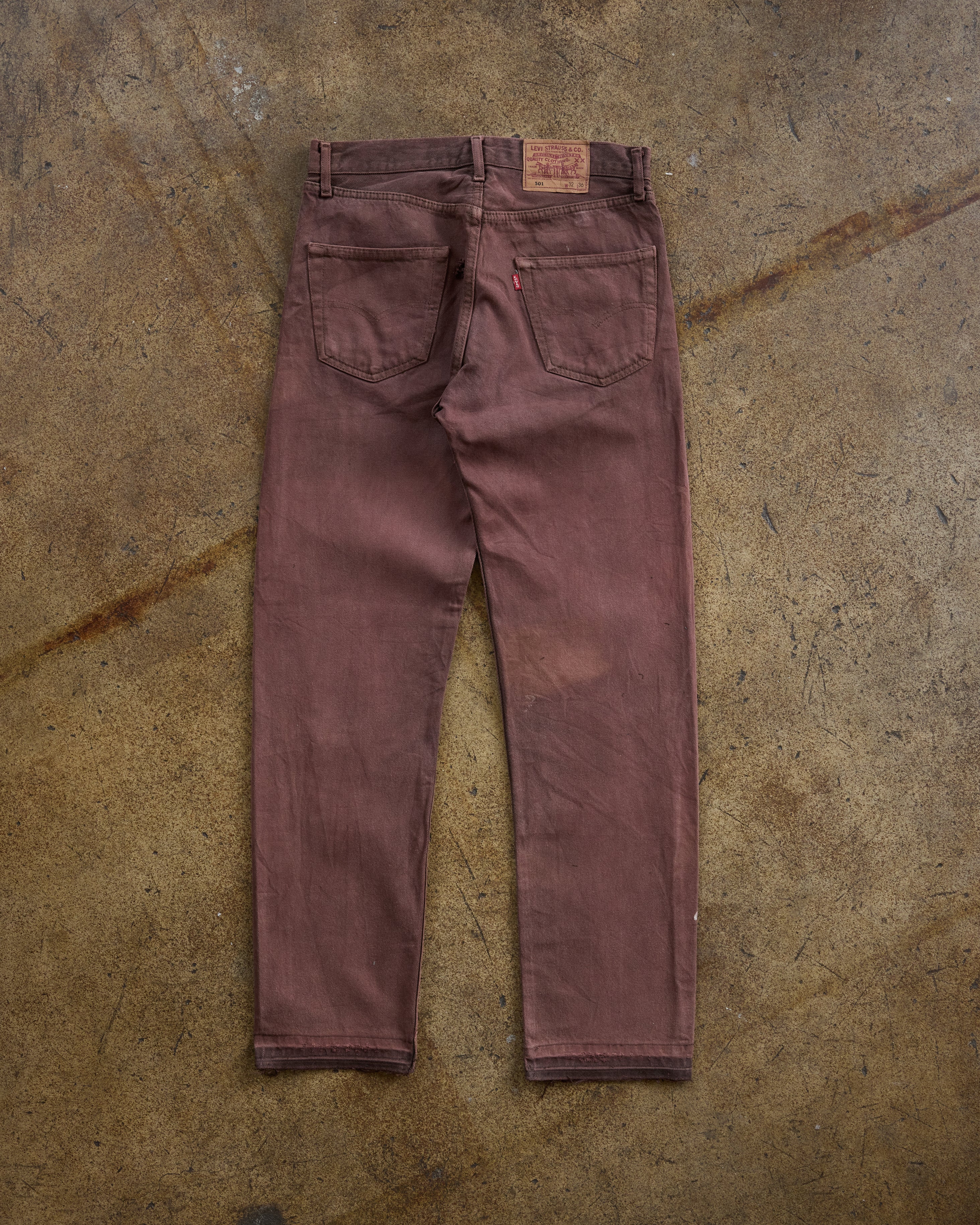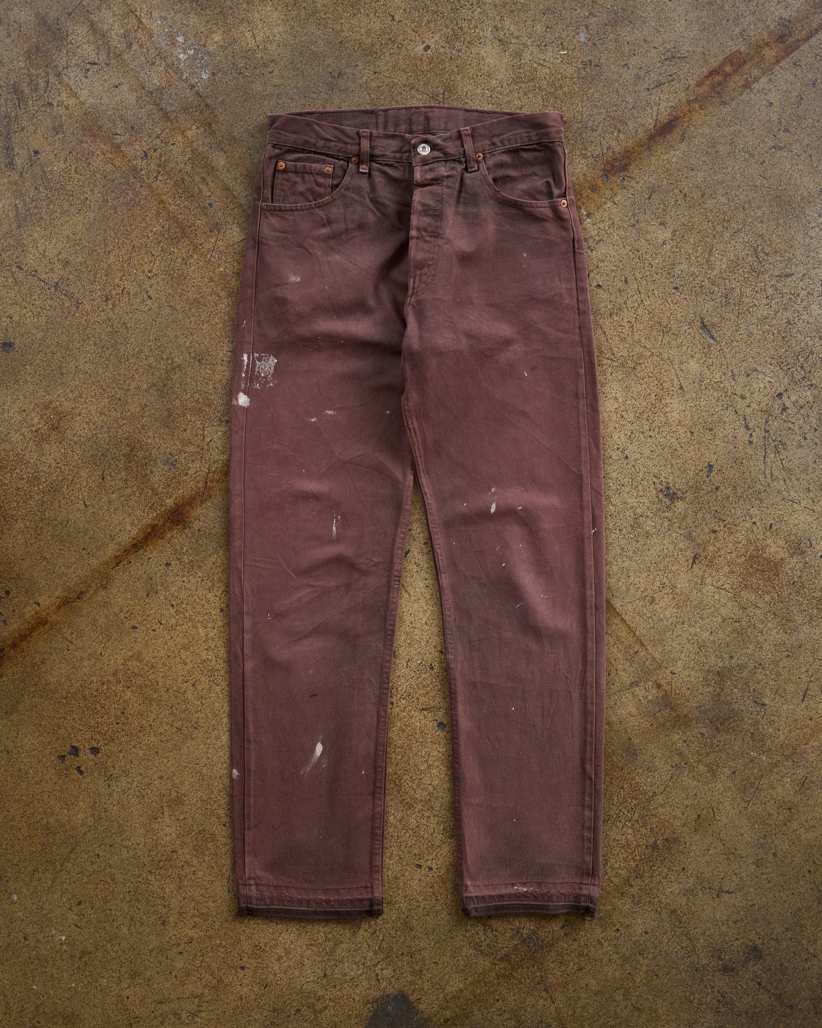 Levi's 501 Faded & Painted Ox-Blood Released Hem Jeans - 1990s