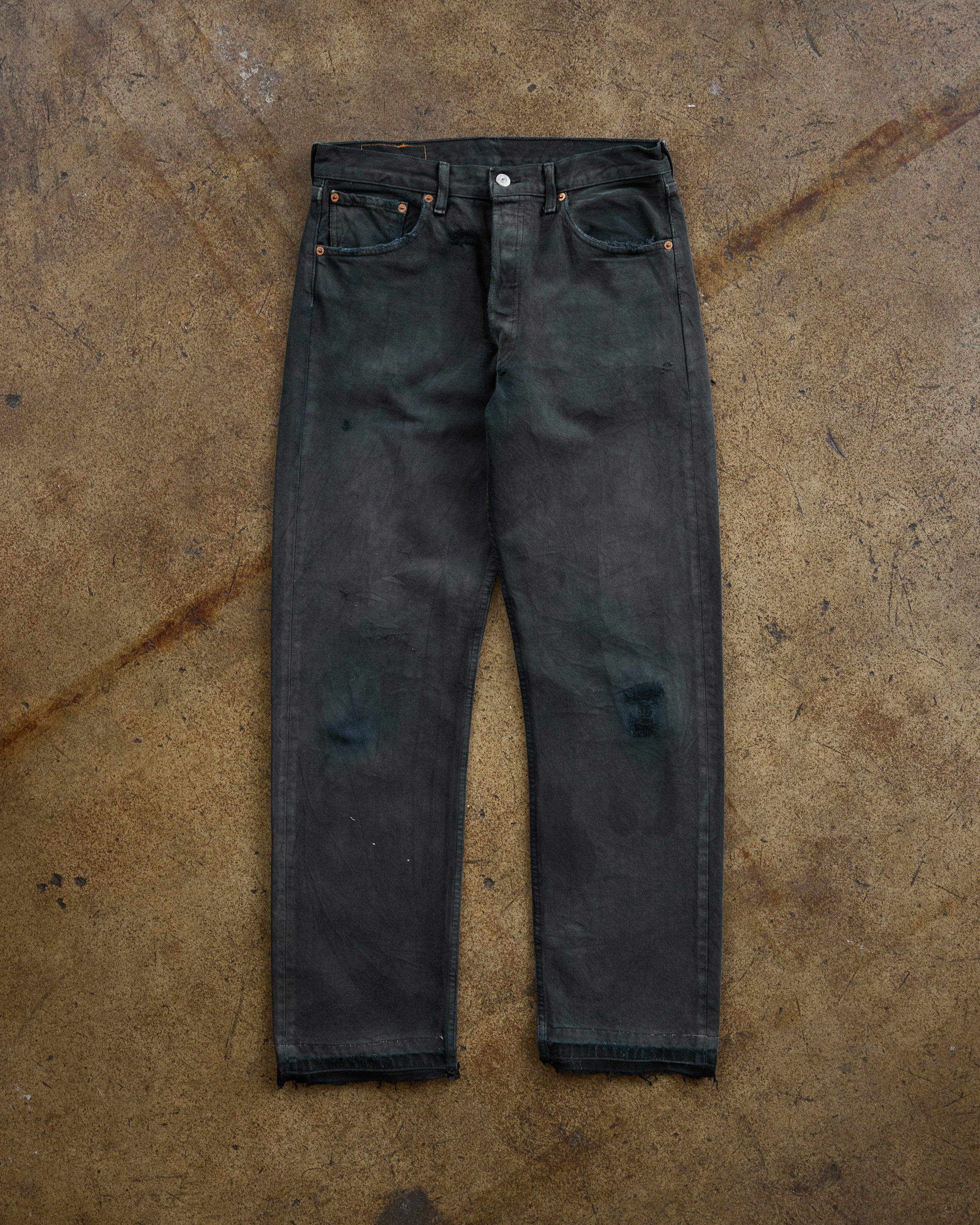Levi's 501 Faded & Repaired Blue Black Released Hem Jeans - 1990s
