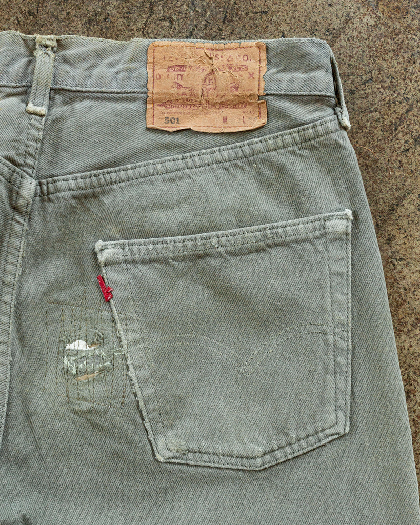 Levi's 501 Grey Green Repaired Jeans - 1990s
