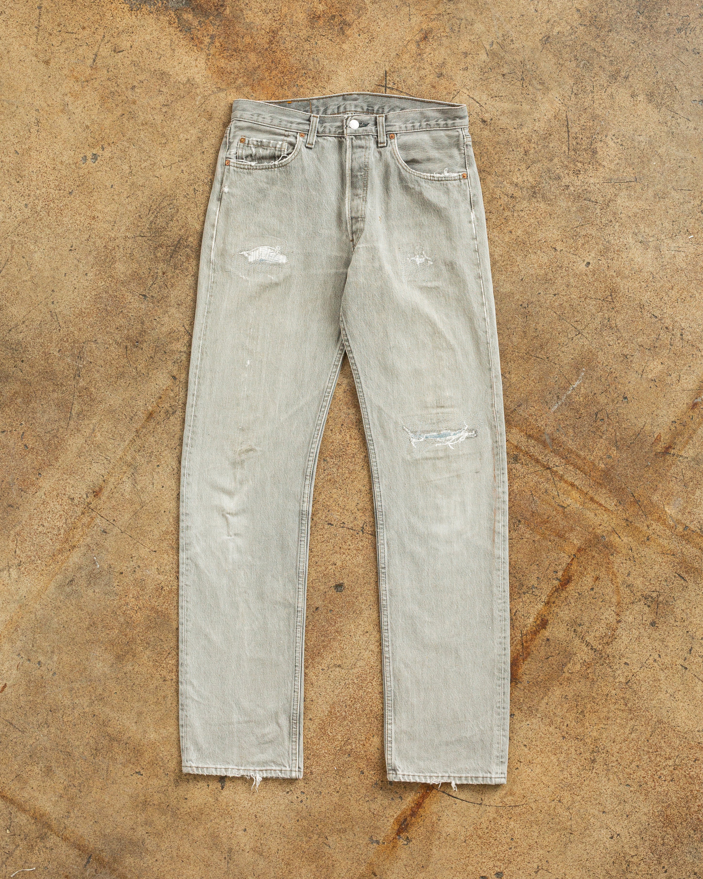Levi's 501 Light Grey Repaired Jeans - 1990s