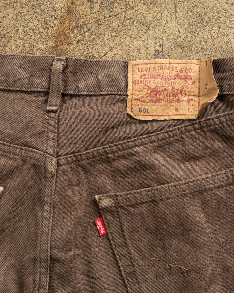 Levi's 501 Mud Brown Repaired Jeans - 1990s