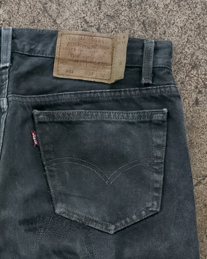 Levi's 501 Overdyed Blue Black Repaired Jeans - 1990s