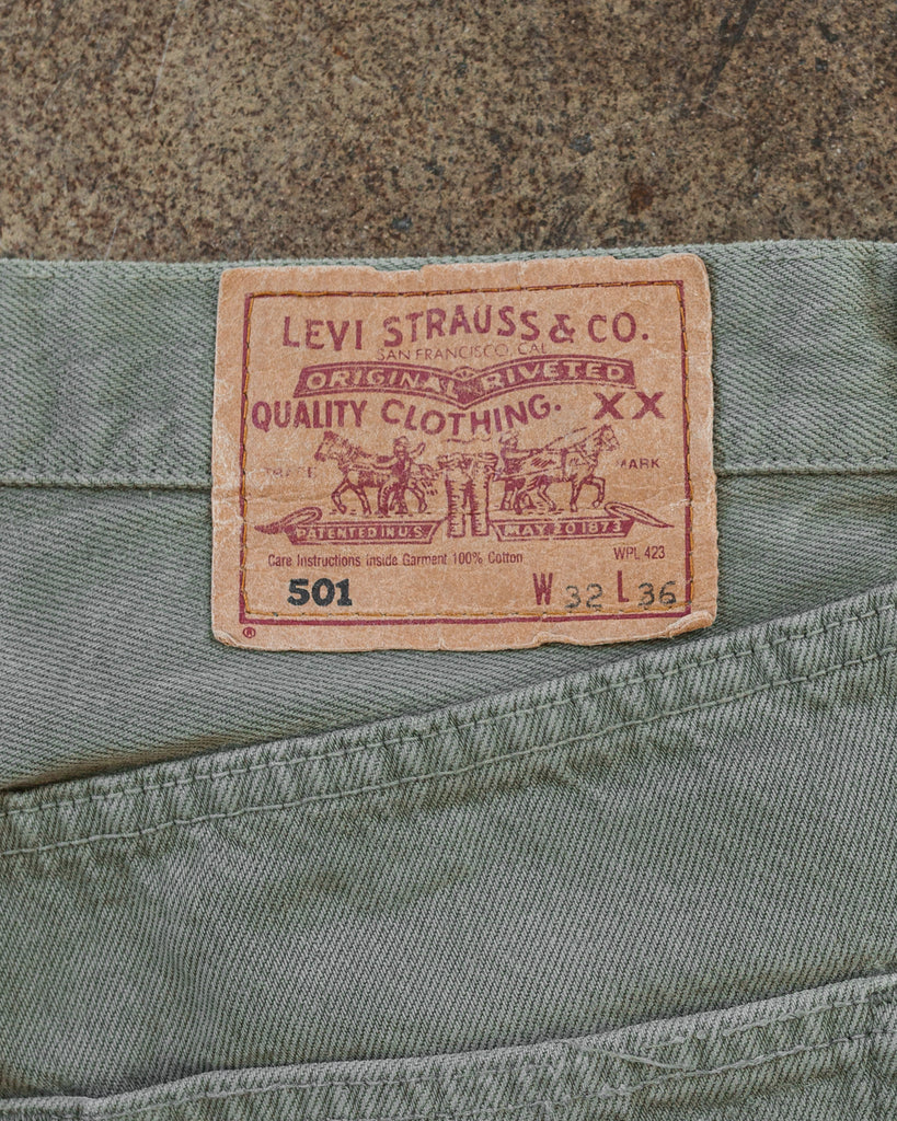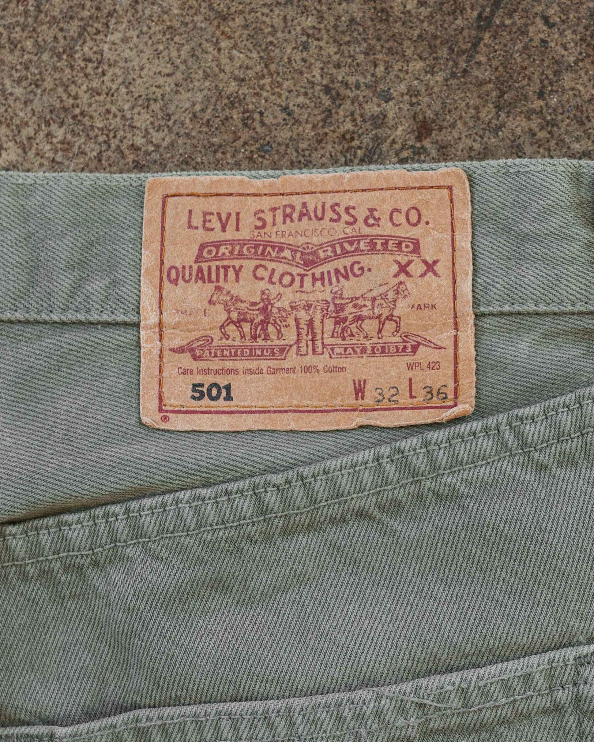 Levi's 501 Sage Green Repaired Jeans - 1990s