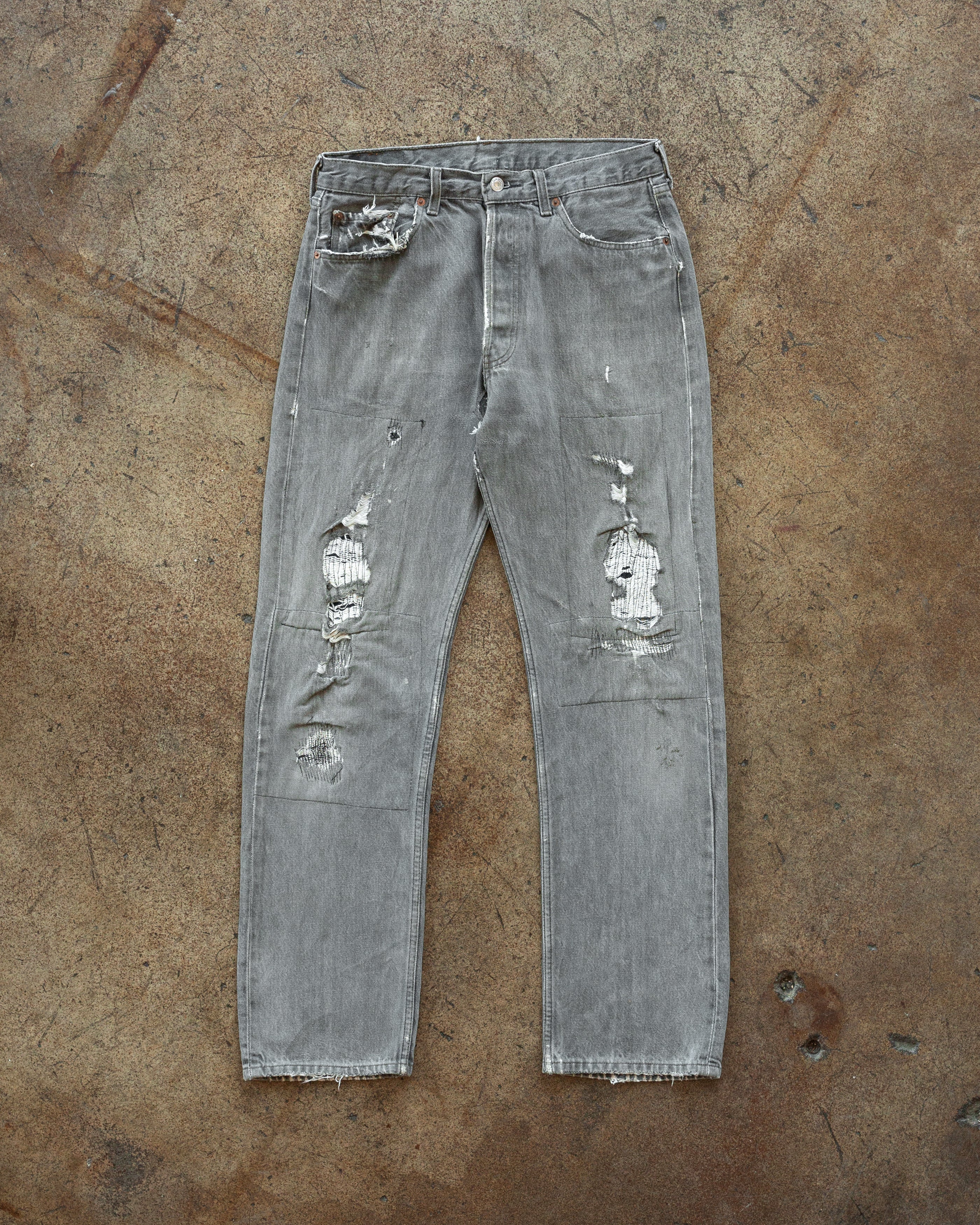 Levi's 501 Repaired Grey Jeans - 1990s