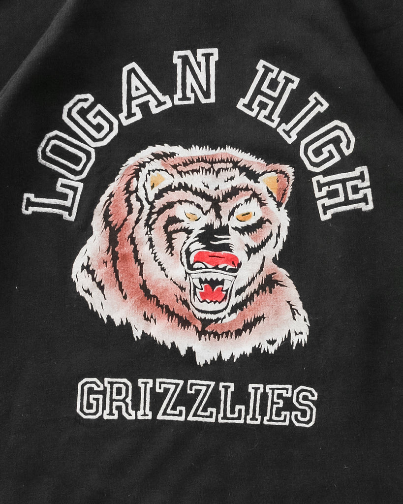 "Logan High Grizzlies" Raglan Flock Print Short-Sleeve Sweatshirt - 1960s