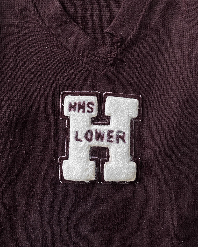 Maroon "HHS Lower" Distressed Collegiate Knitted Sweater - 1960s