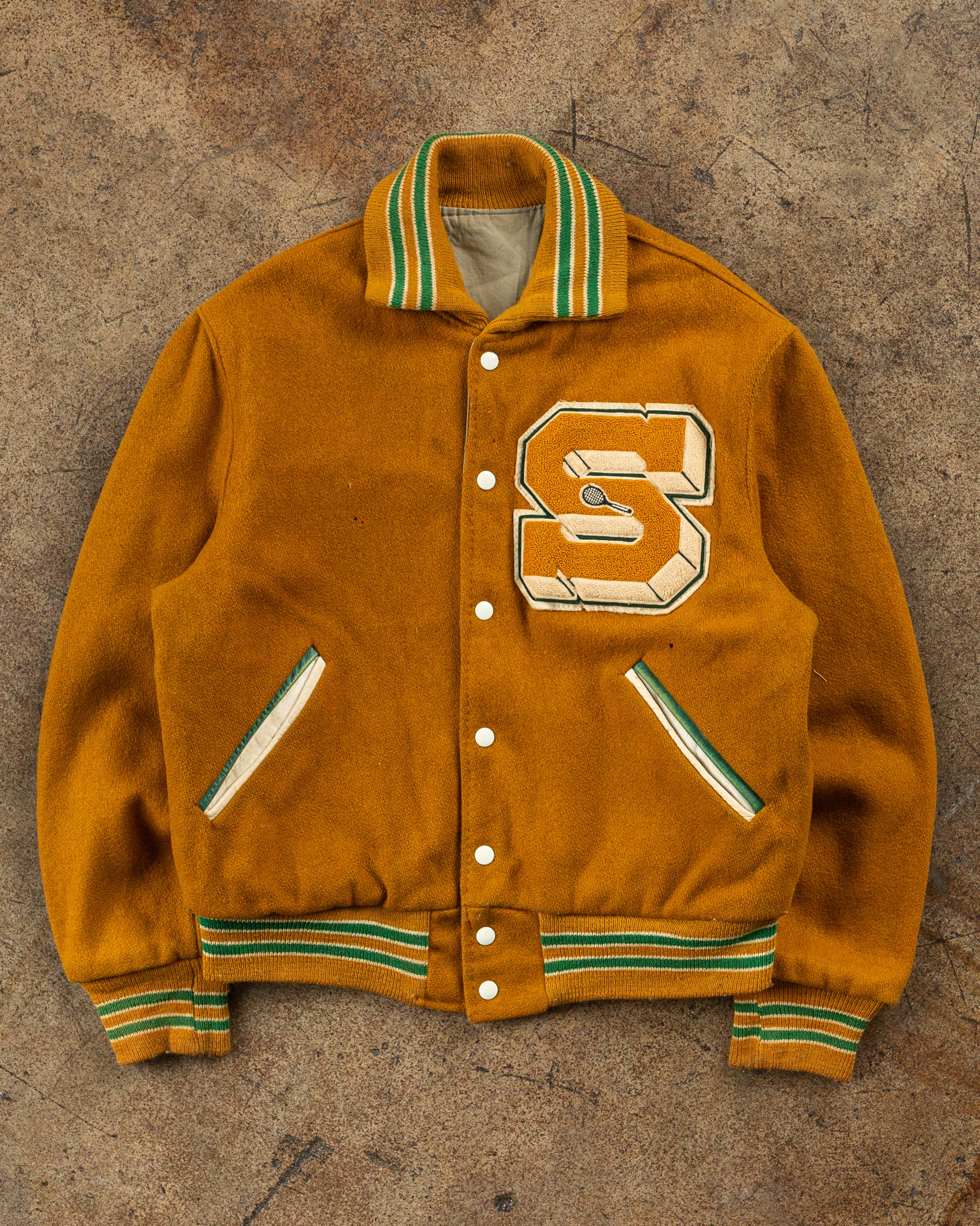 Mustard "S" Wool Reversible Varsity Jacket - 1980s