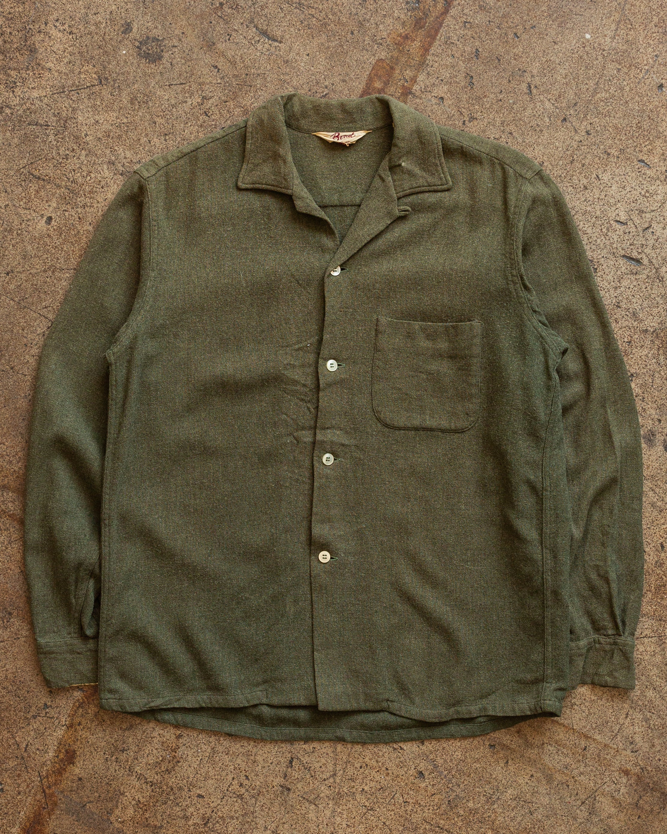 Olive Green Wool Camp Collar Shirt - 1950s