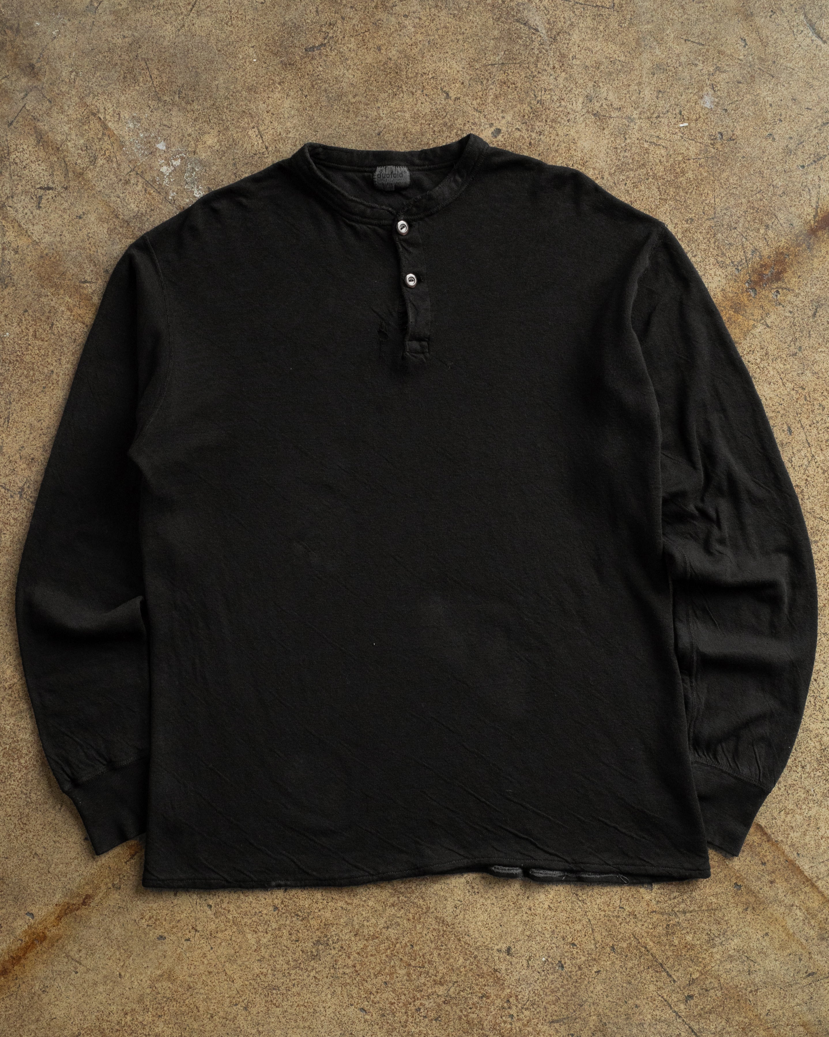 Over-Dyed Black Henley Long-Sleeve Tee - 1990s