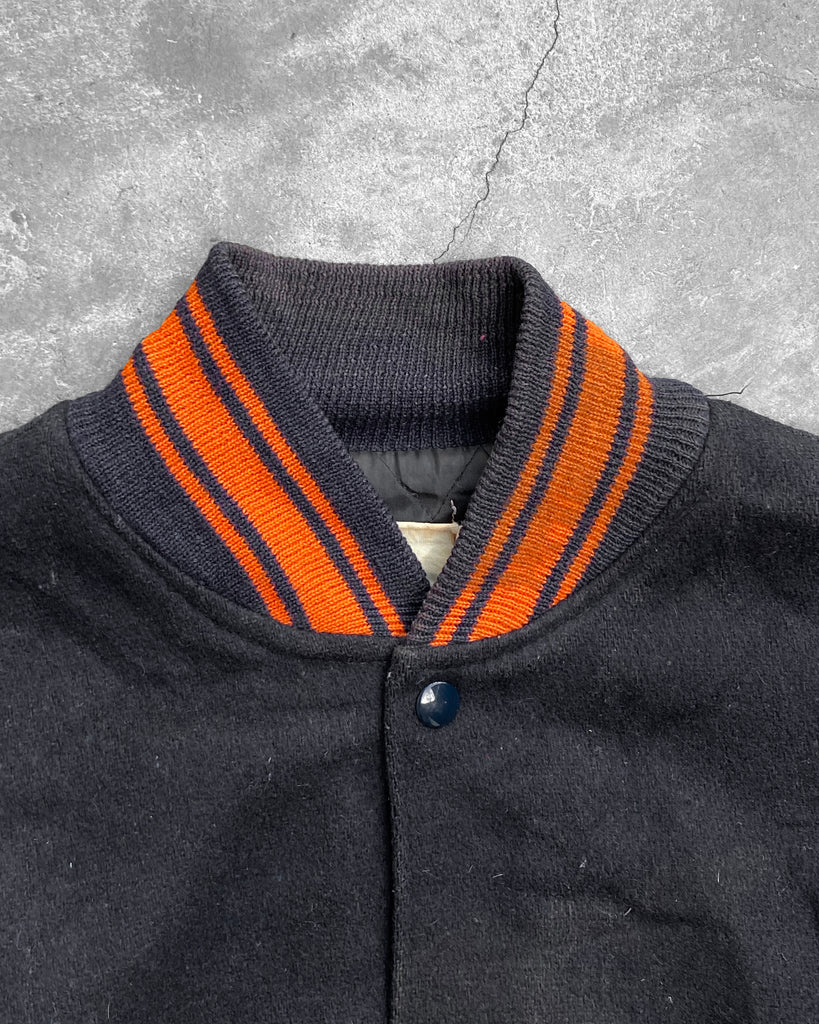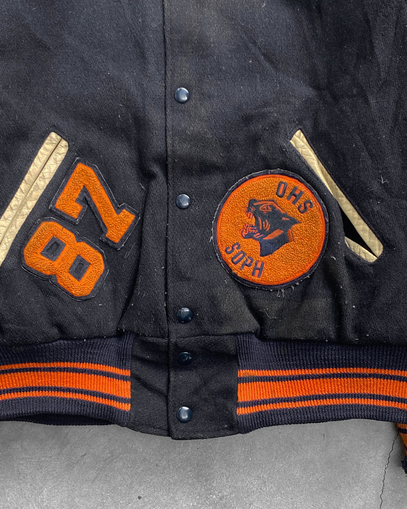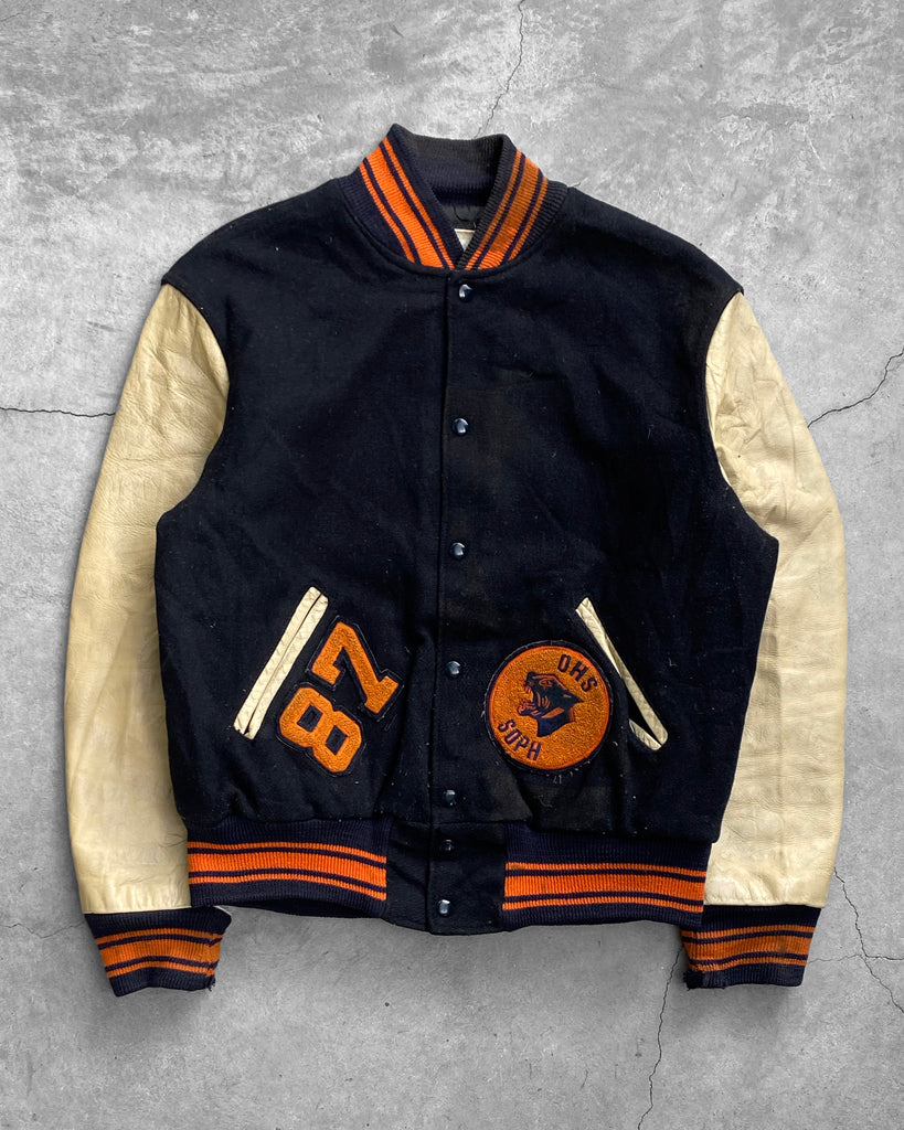 "Oswego" Leather Sleeve Varsity Jacket - 1980s