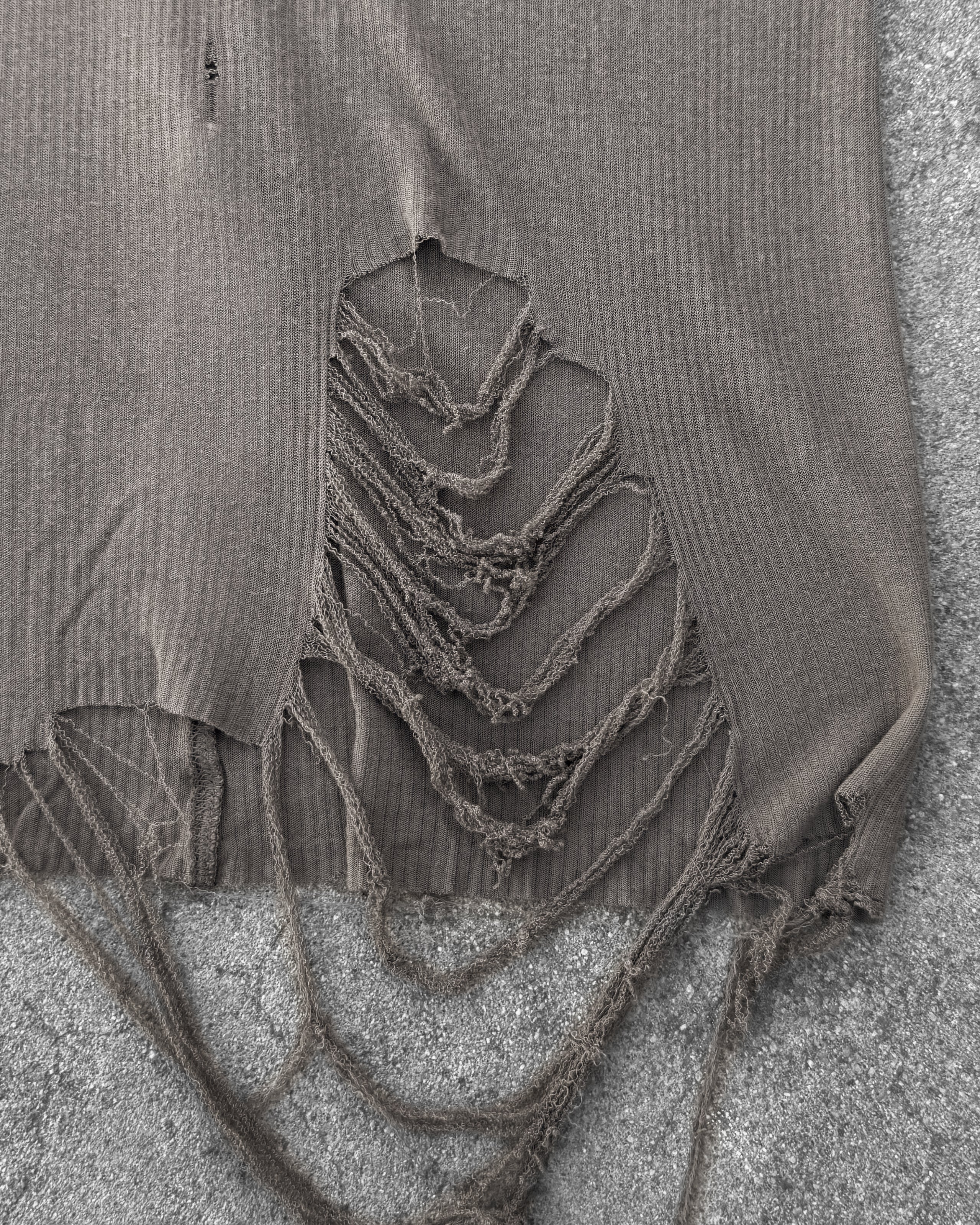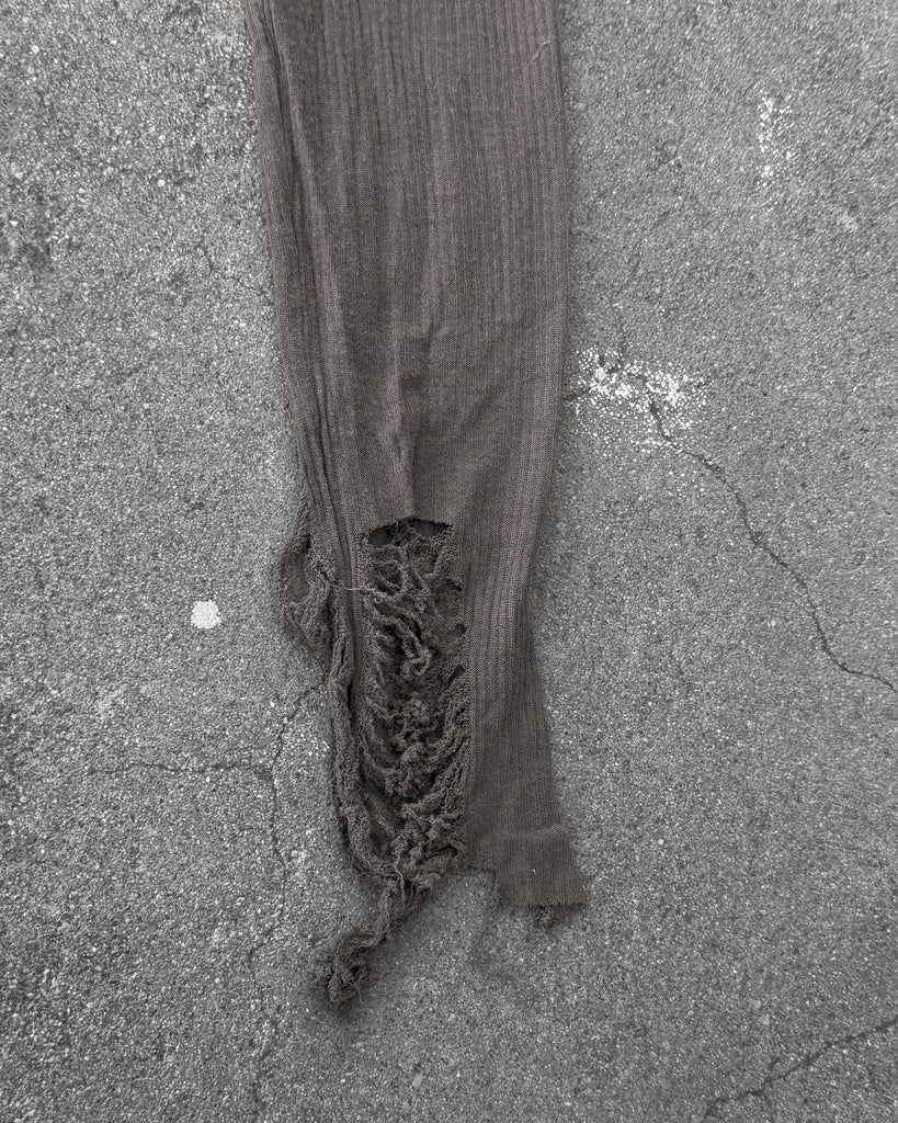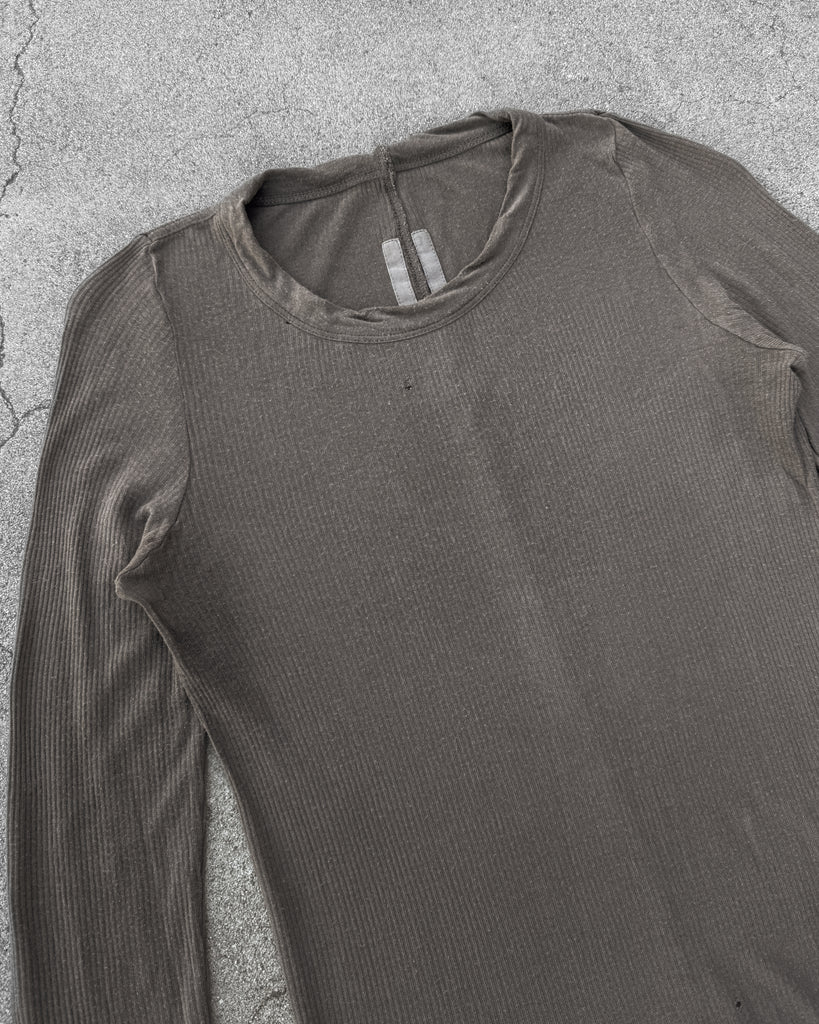 RICK OWENS SS2021 'PHLEGETHON' DISTRESSED RIBBED LONG-SLEEVE TEE