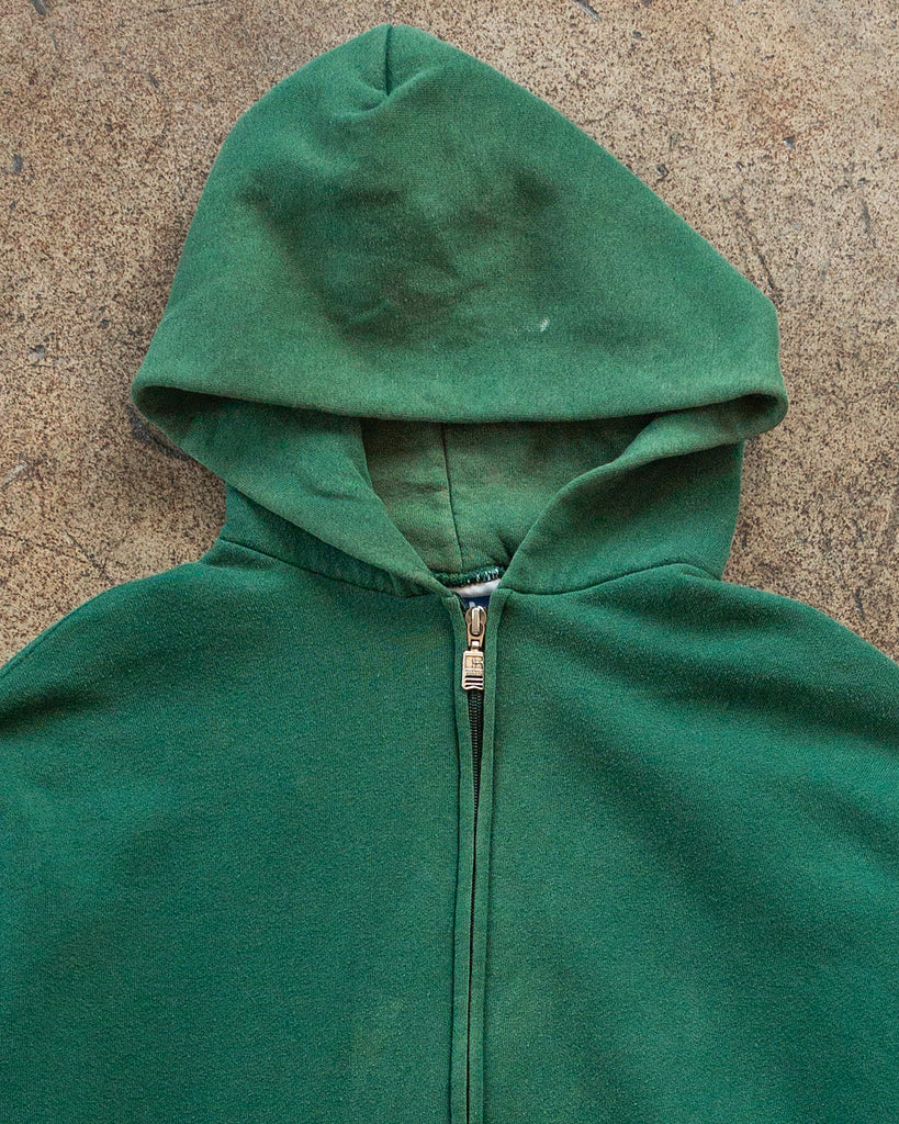 Russell Pine Green Zip-Up Hooded Sweatshirt - 1990s