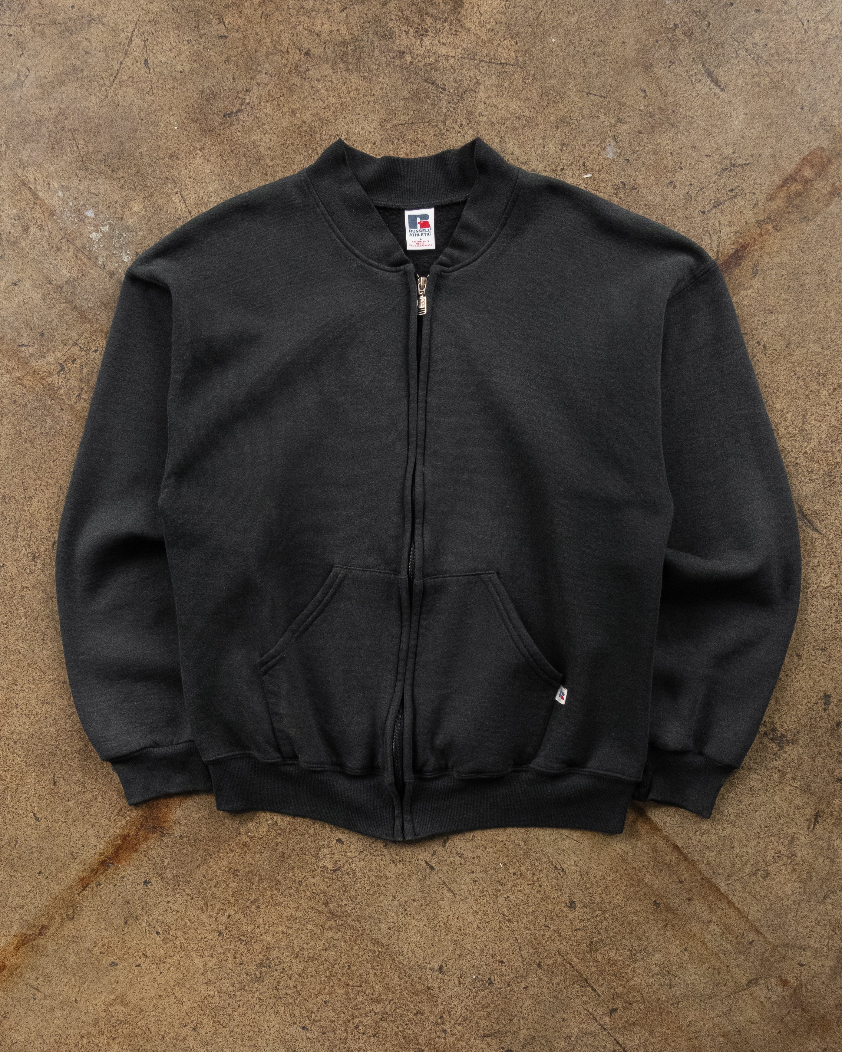 Russell Black Blank Crewneck Zip-Up Sweatshirt - 1990s