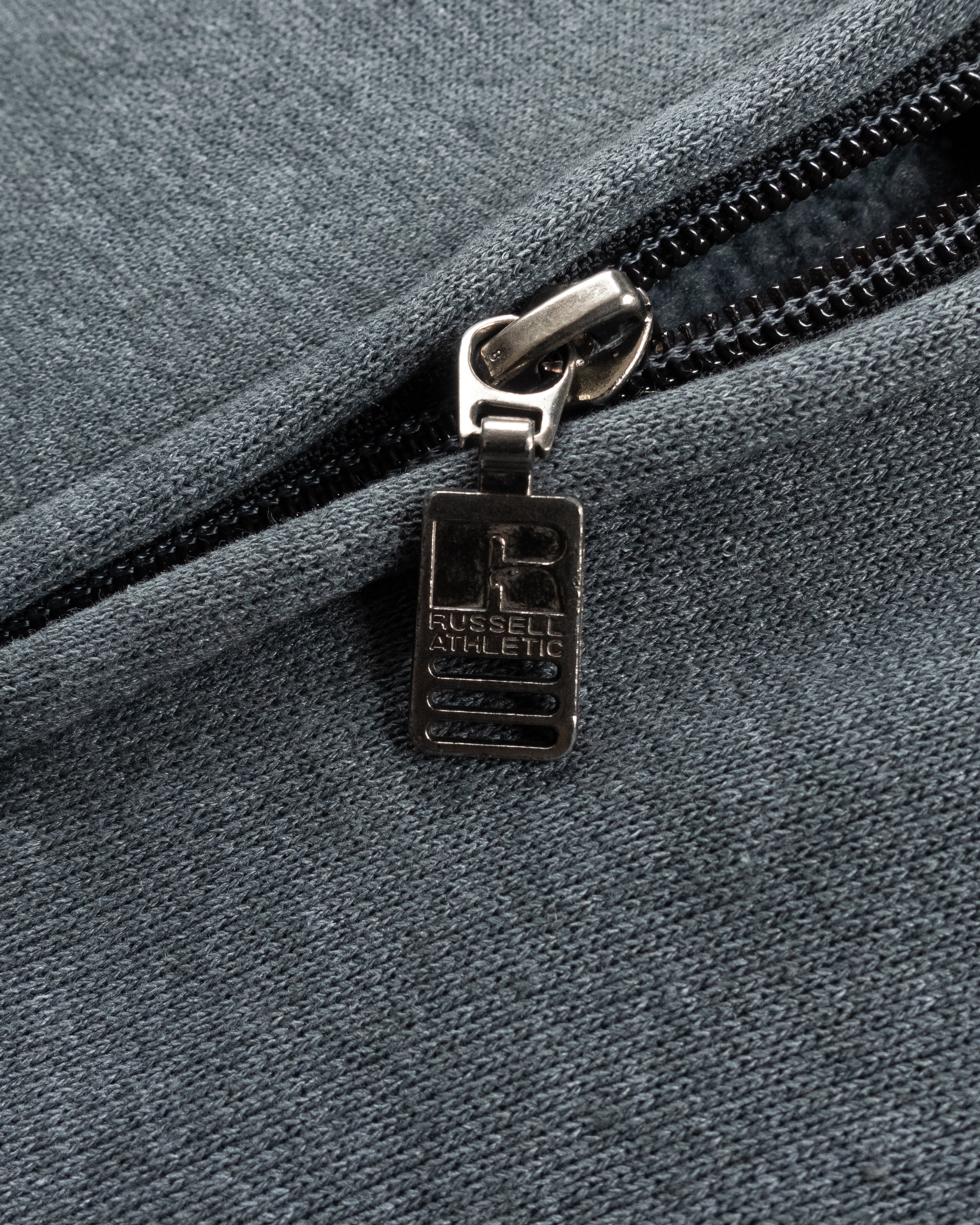 Russell Steel Blue Blank Hooded Zip-Up Sweatshirt - 1990s