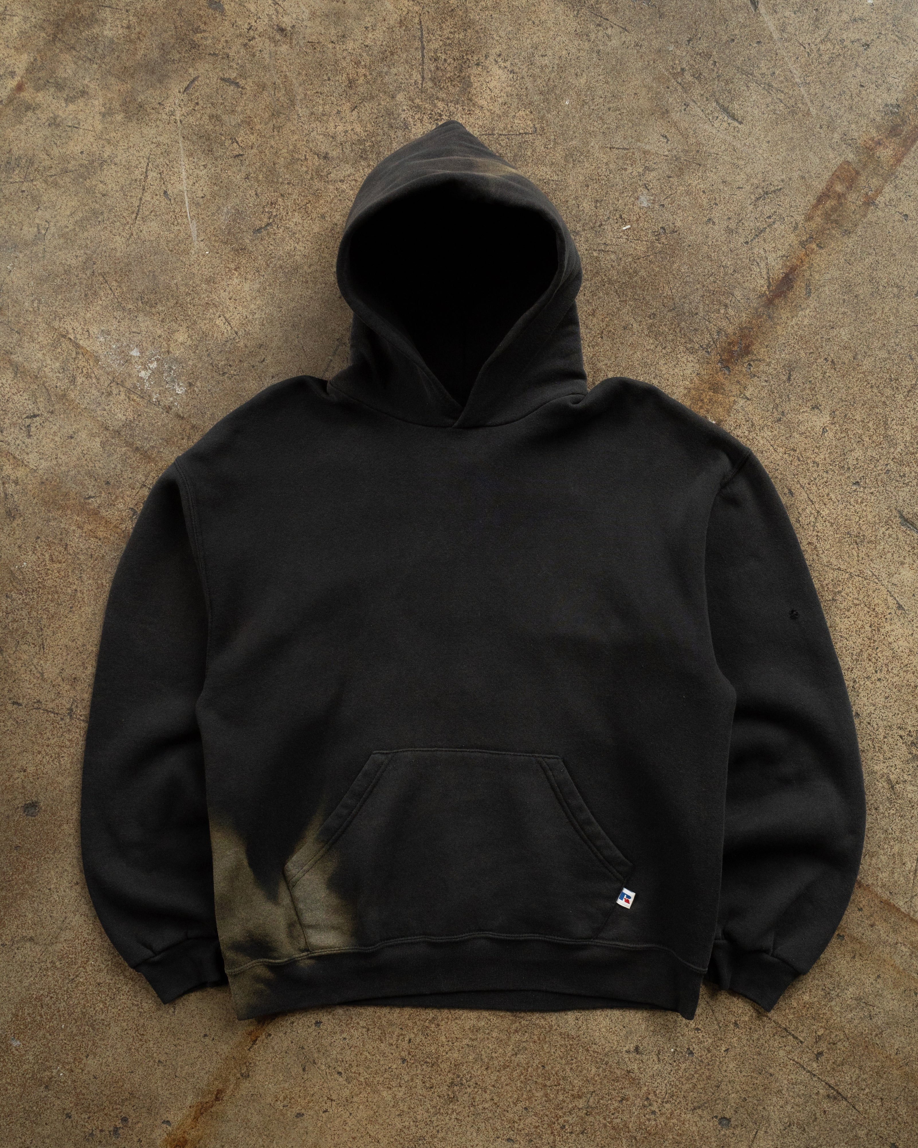 Russell Sun Bleached Black Hooded Sweatshirt - 1990s