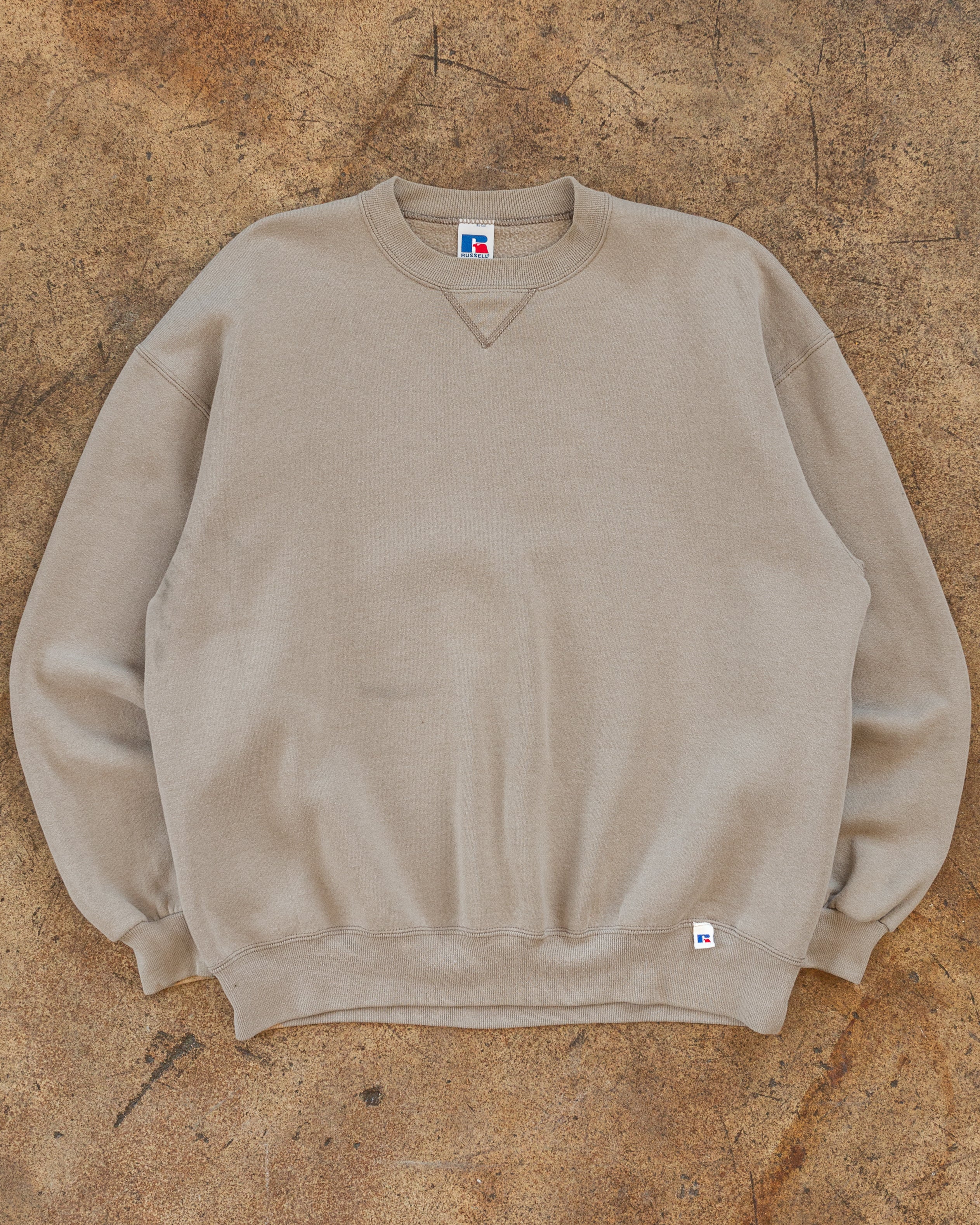 Russell Taupe Blank Crewneck Sweatshirt - 1990s