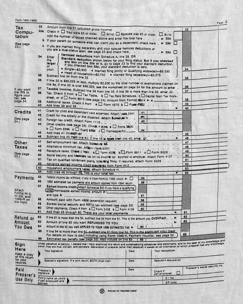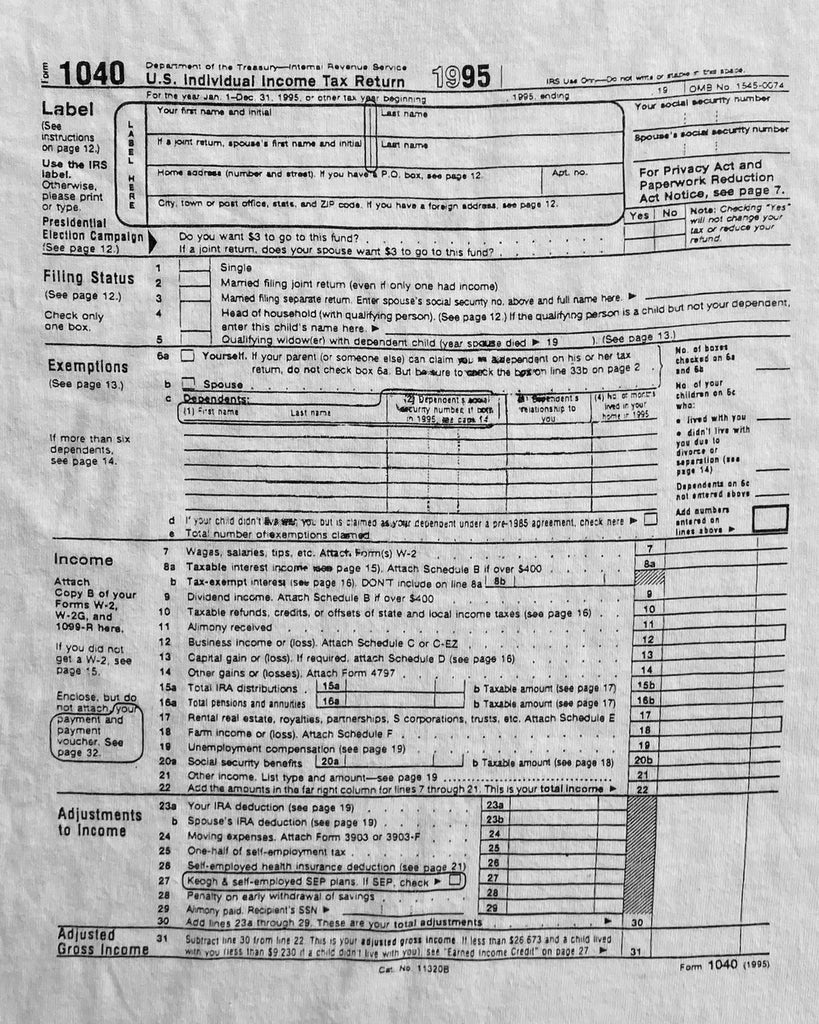 Single Stitched "1040 Tax Return Form" Tee - 1990s