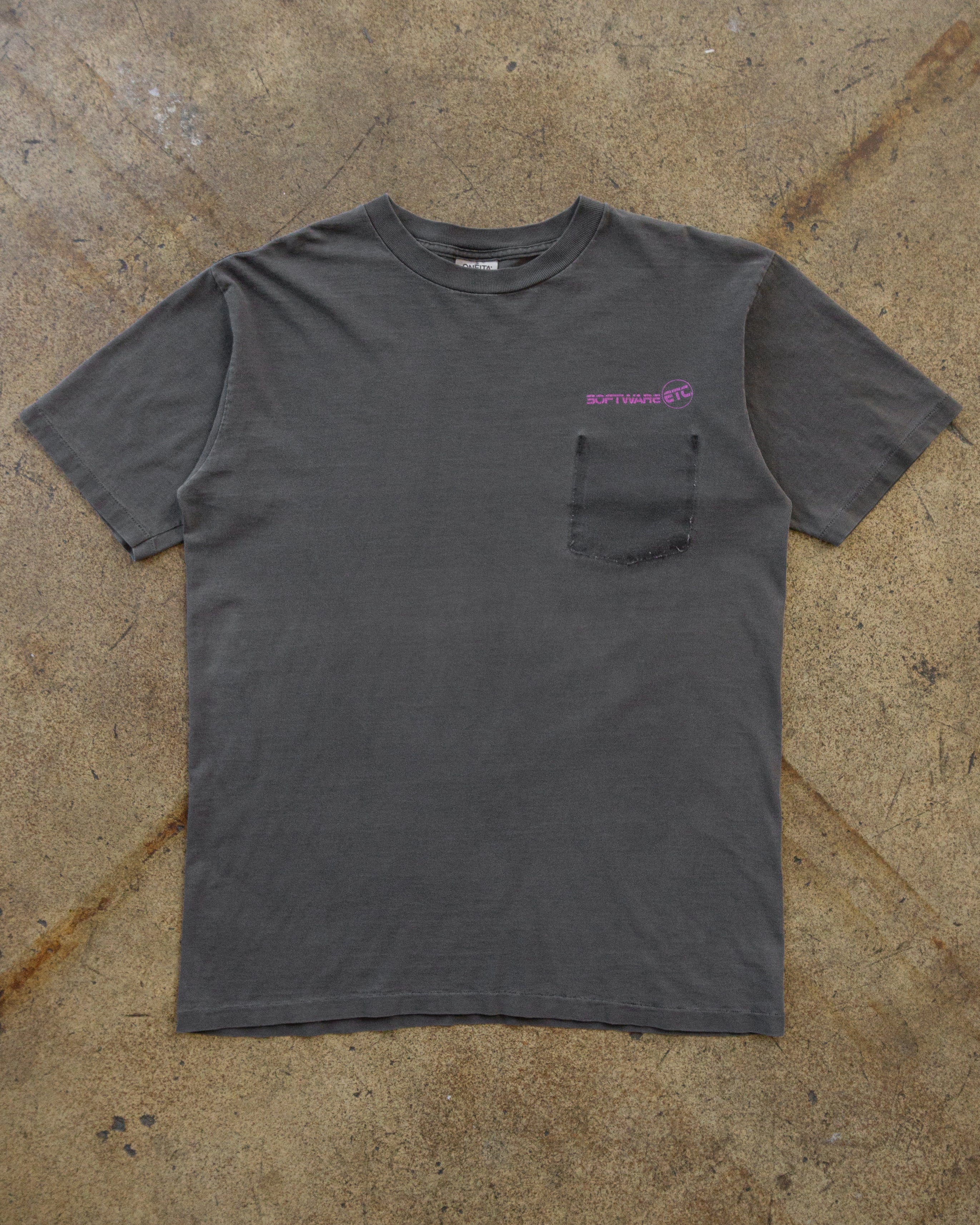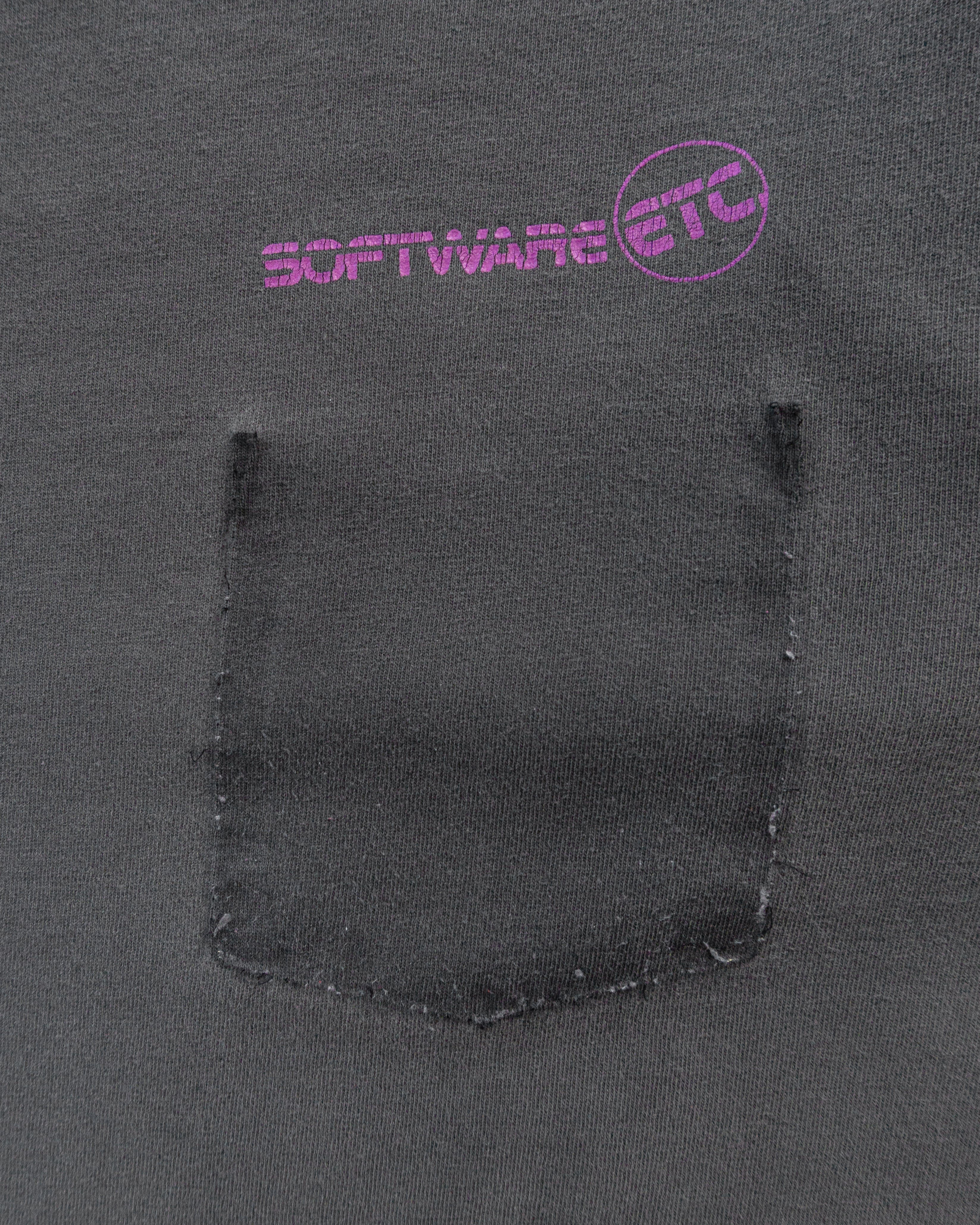 Single Stitched Charcoal Faded "Software ETC" Removed Pocket Tee - 1990s