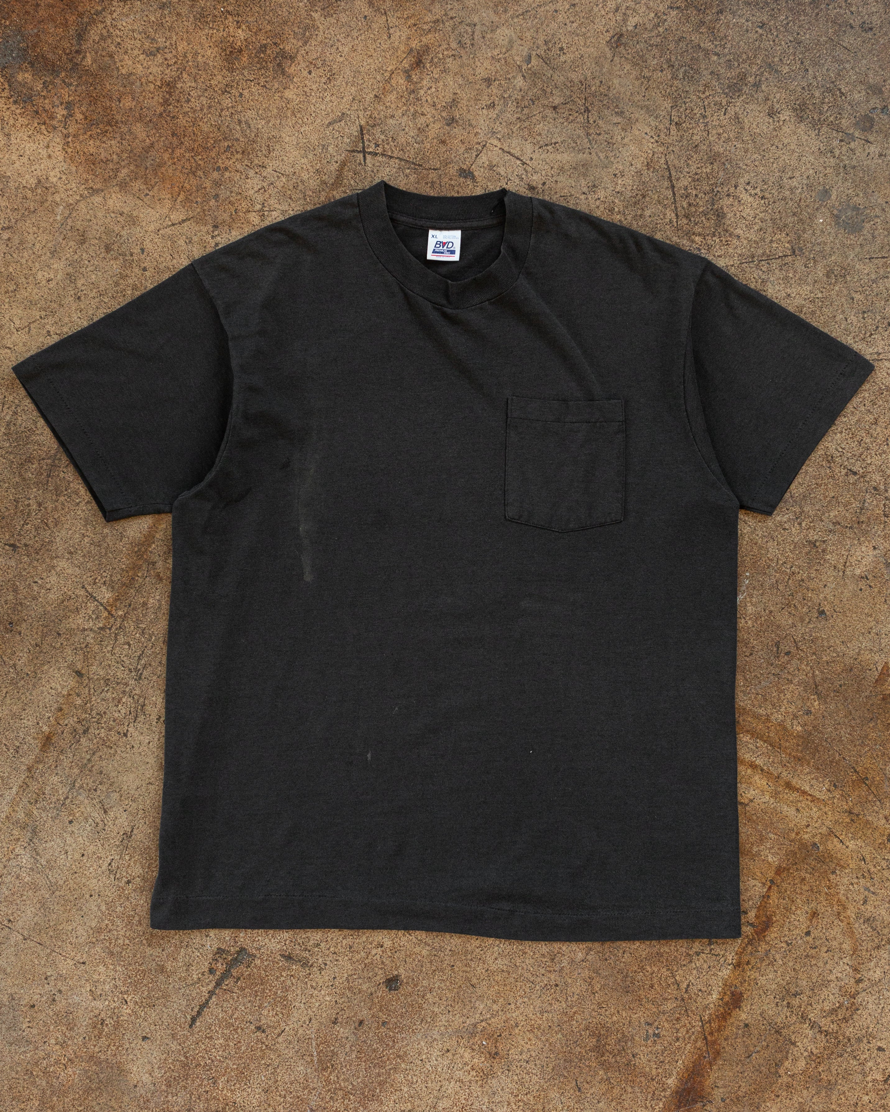 Single Stitched Faded Black Blank Pocket Tee - 1990s