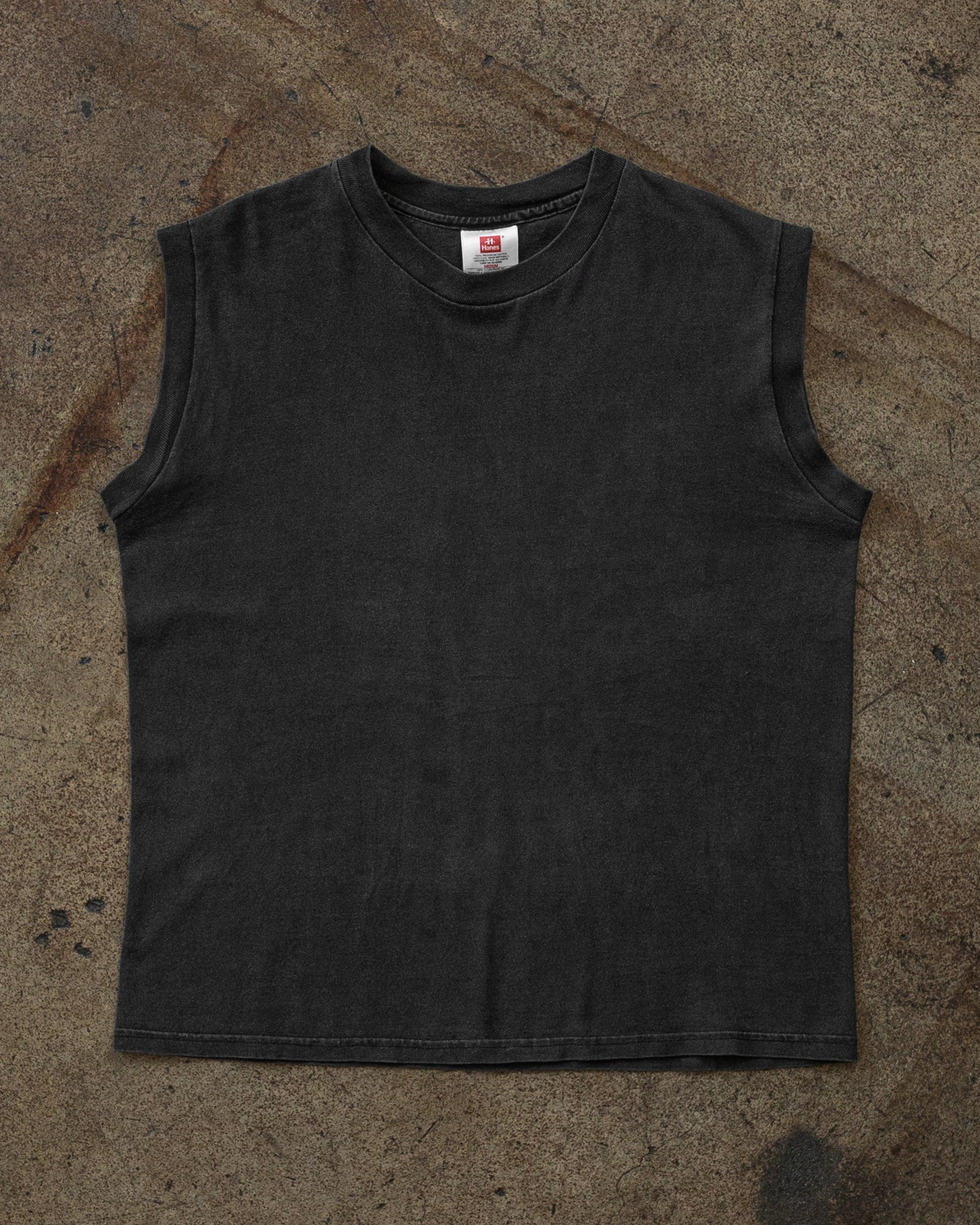 Single Stitched Faded Black Blank Sleeveless Tee - 1990s