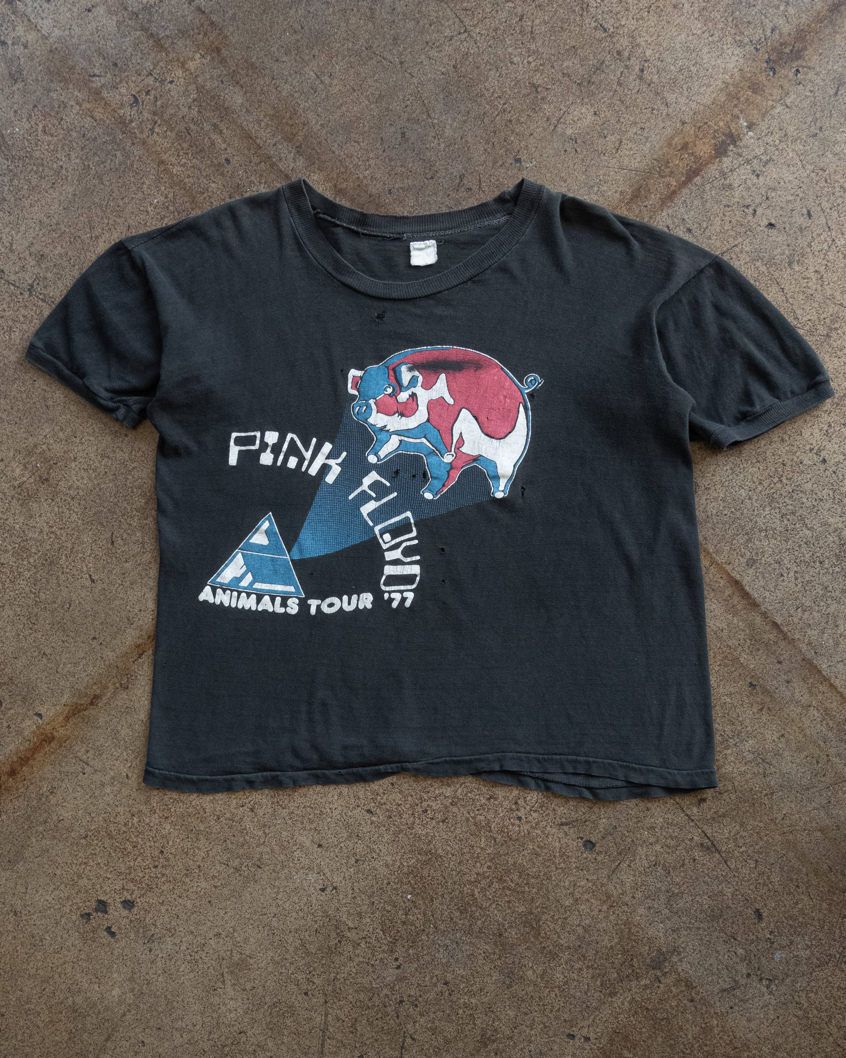 Single Stitched Faded & Distressed "Pink Floyd Animals Tour" Cropped Tee - 1970s