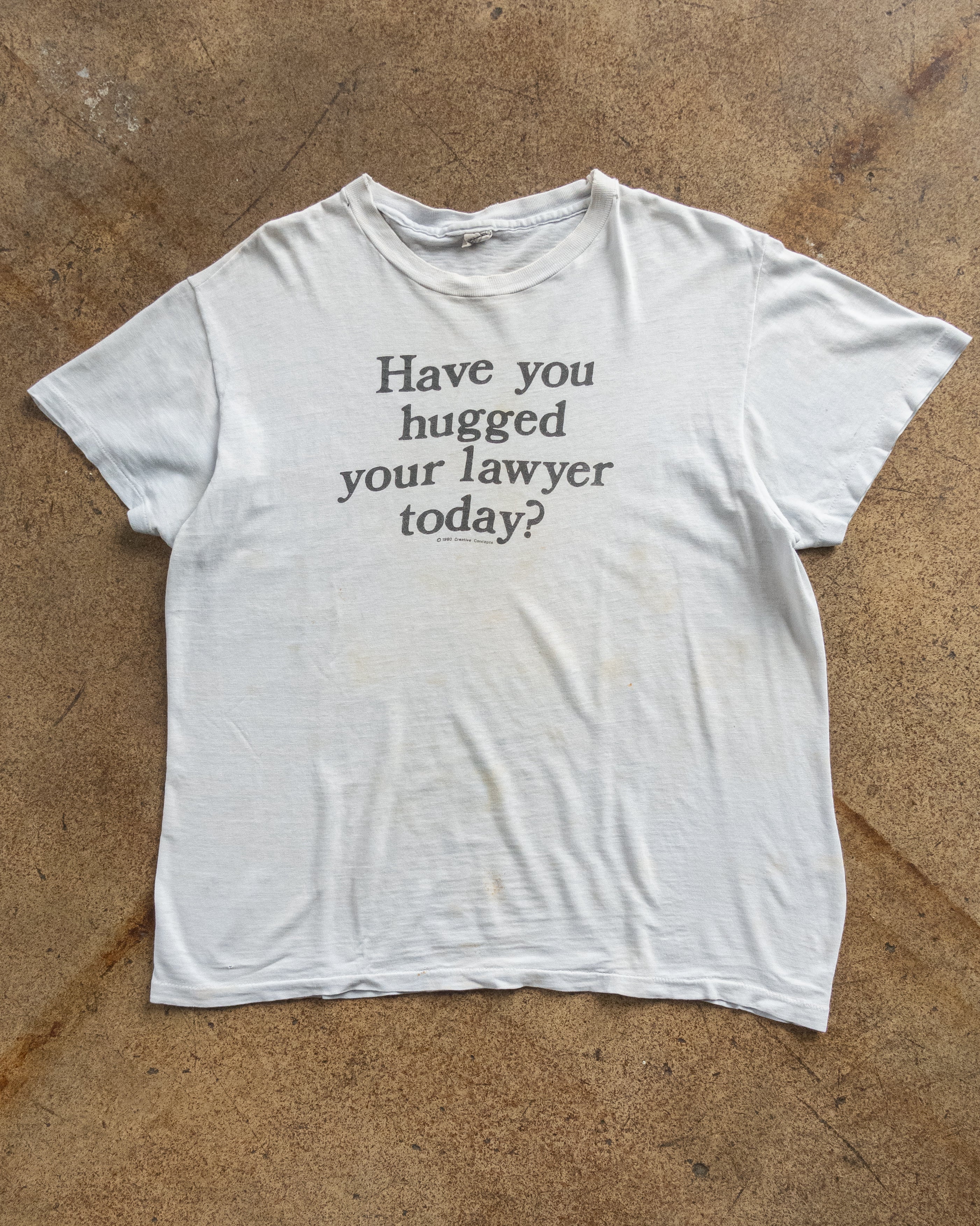 Single Stitched "Have You Hugged Your Lawyer Today?" Tee - 1980s