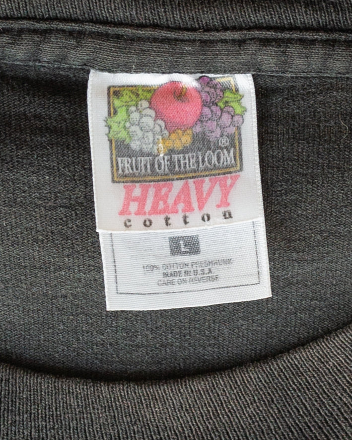 This tee is intended to be worn inside-out. We pick these tee’s based on their color, fading, and stitching details.
