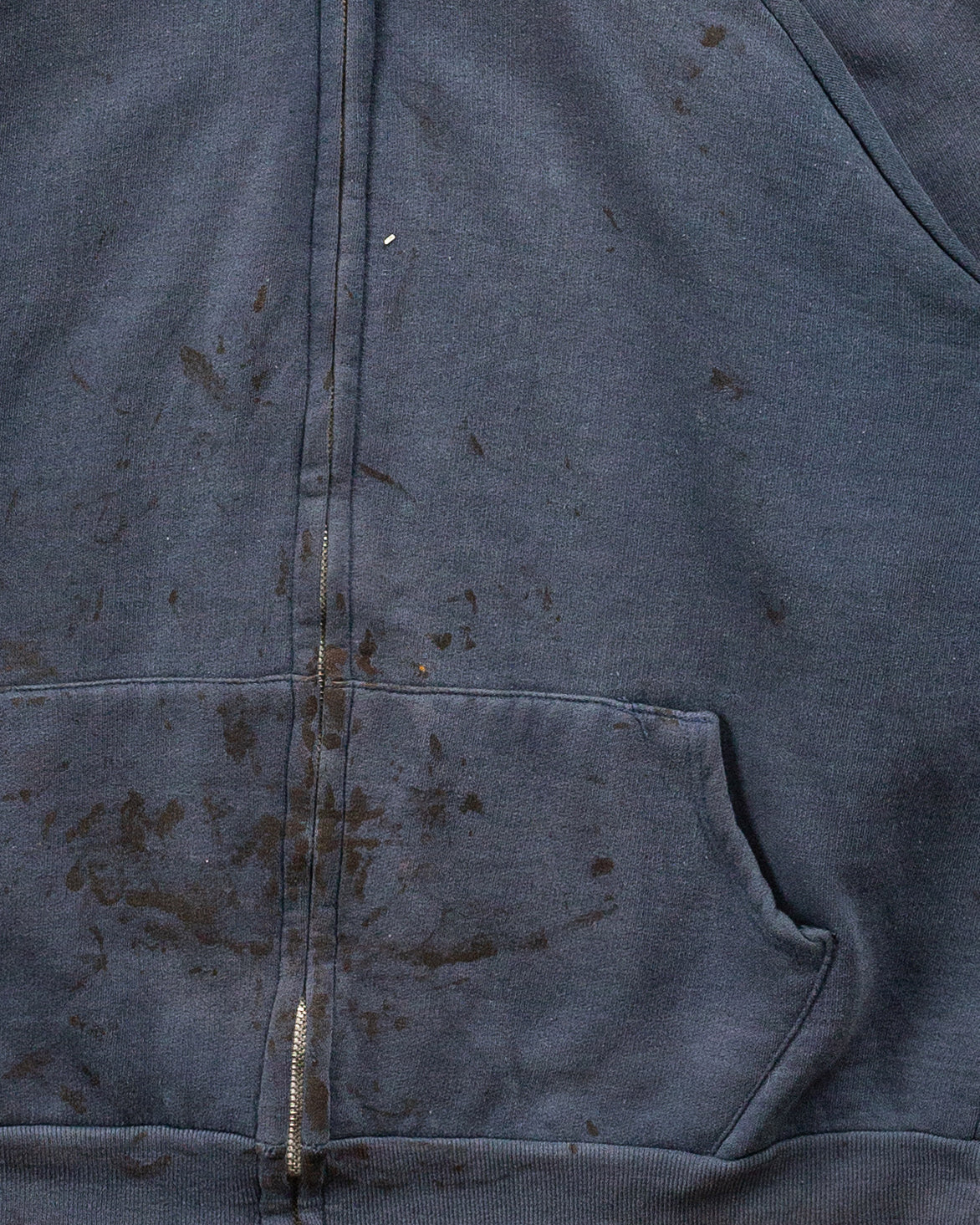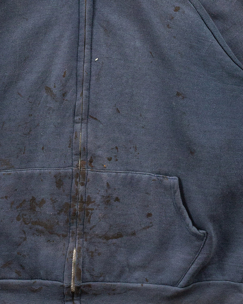 Sun Faded Blue Blank Painted Zip-Up Hooded Sweatshirt - 1980s