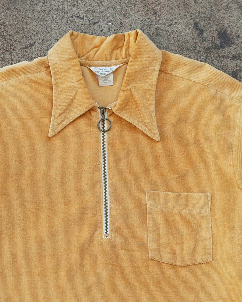 Sun Faded Quarter-Zip Corduroy Work Shirt - 1970s