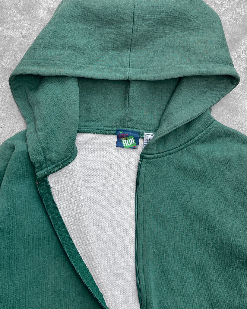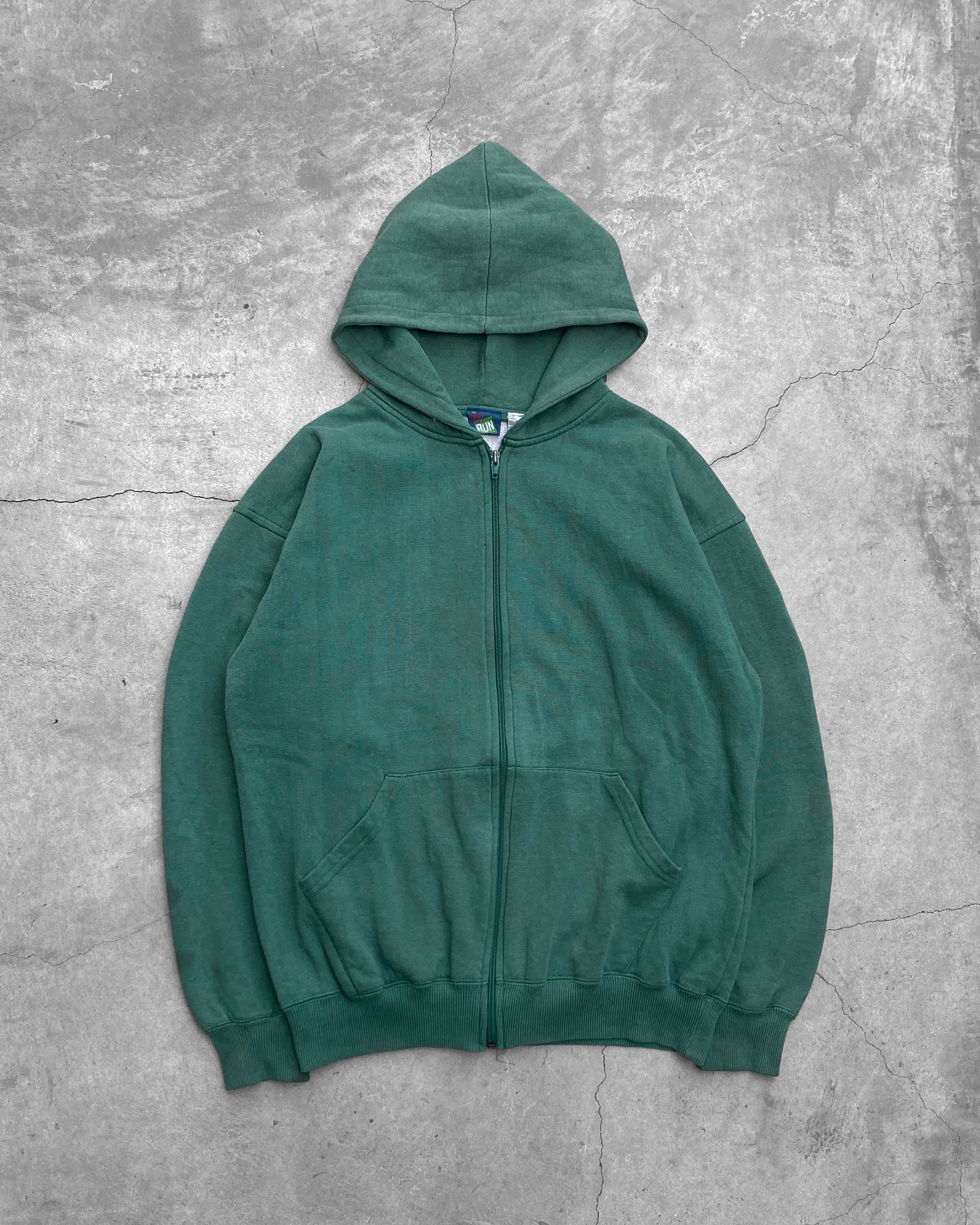Teal Blank Zip-Up Hooded Sweatshirt - 1990s