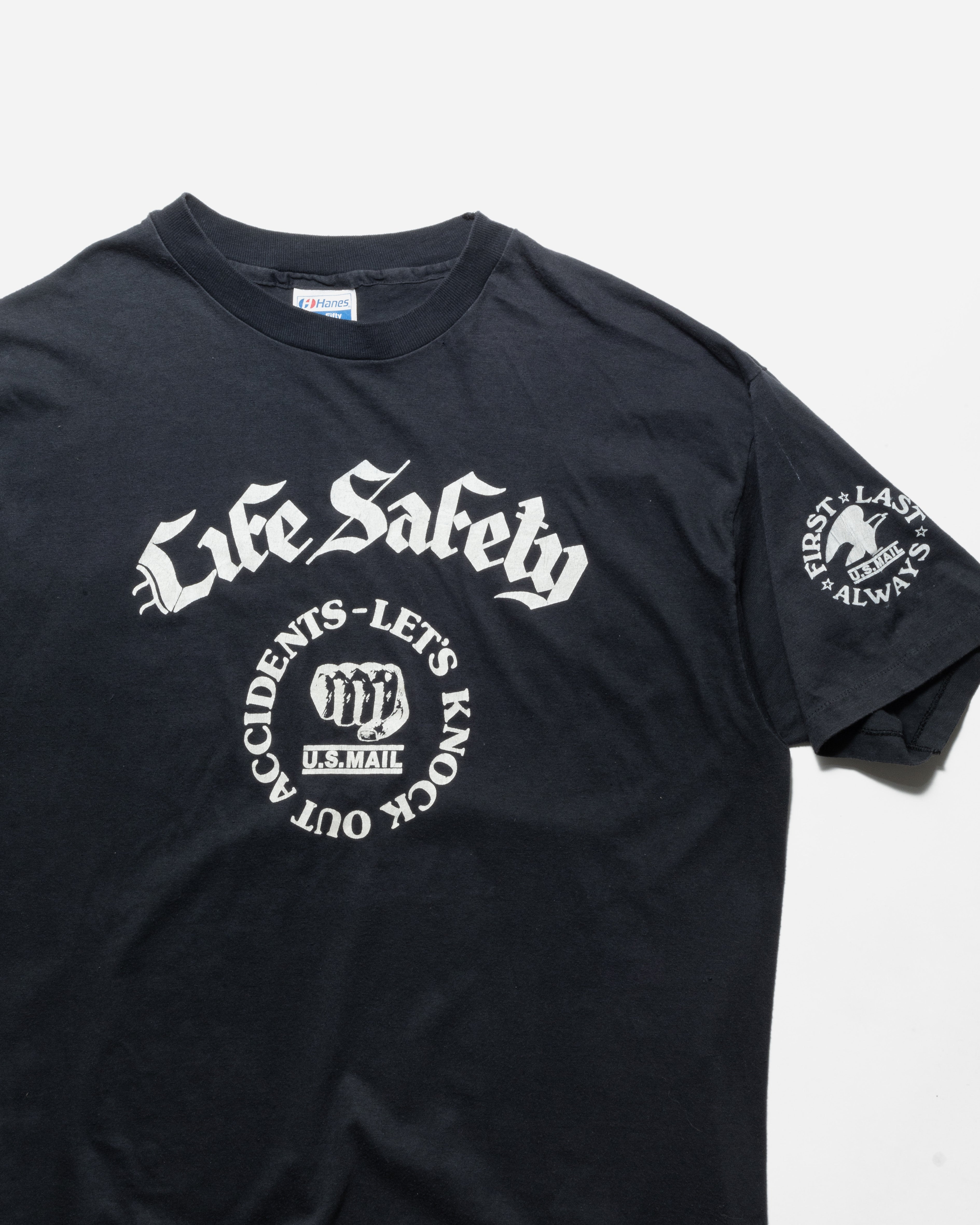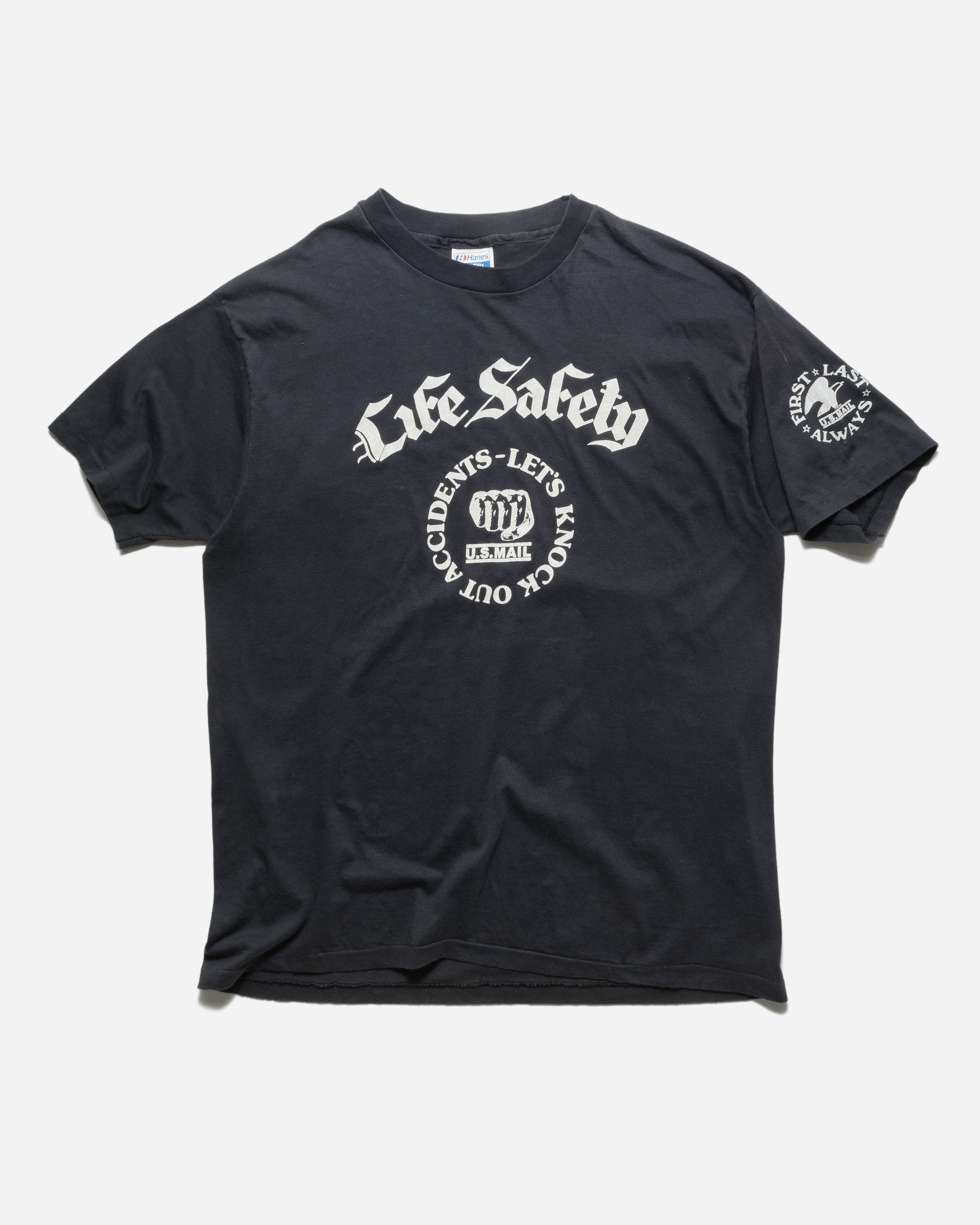 VINTAGE 1980S 'LIFE SAFETY' FADED BLACK TEE - XX-LARGE is backordered and will ship as soon as it is back in stock.