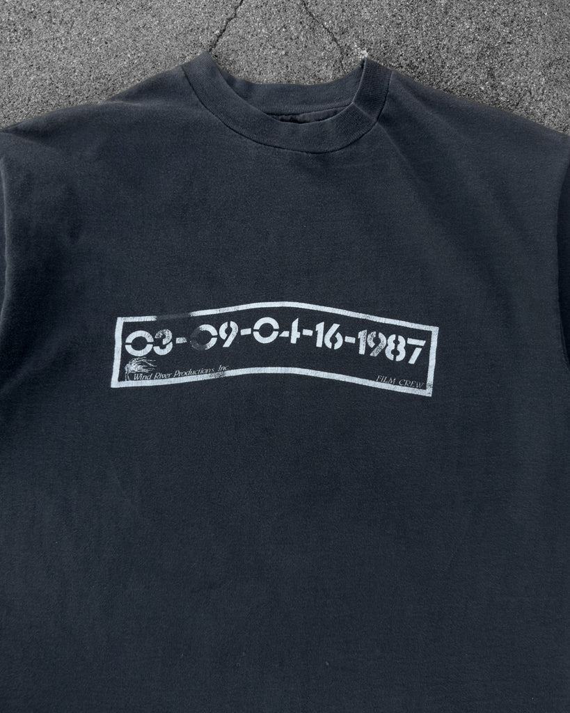 VINTAGE 1980S 'SHADOW OF DEATH' FADED BLACK FILM CREW TEE