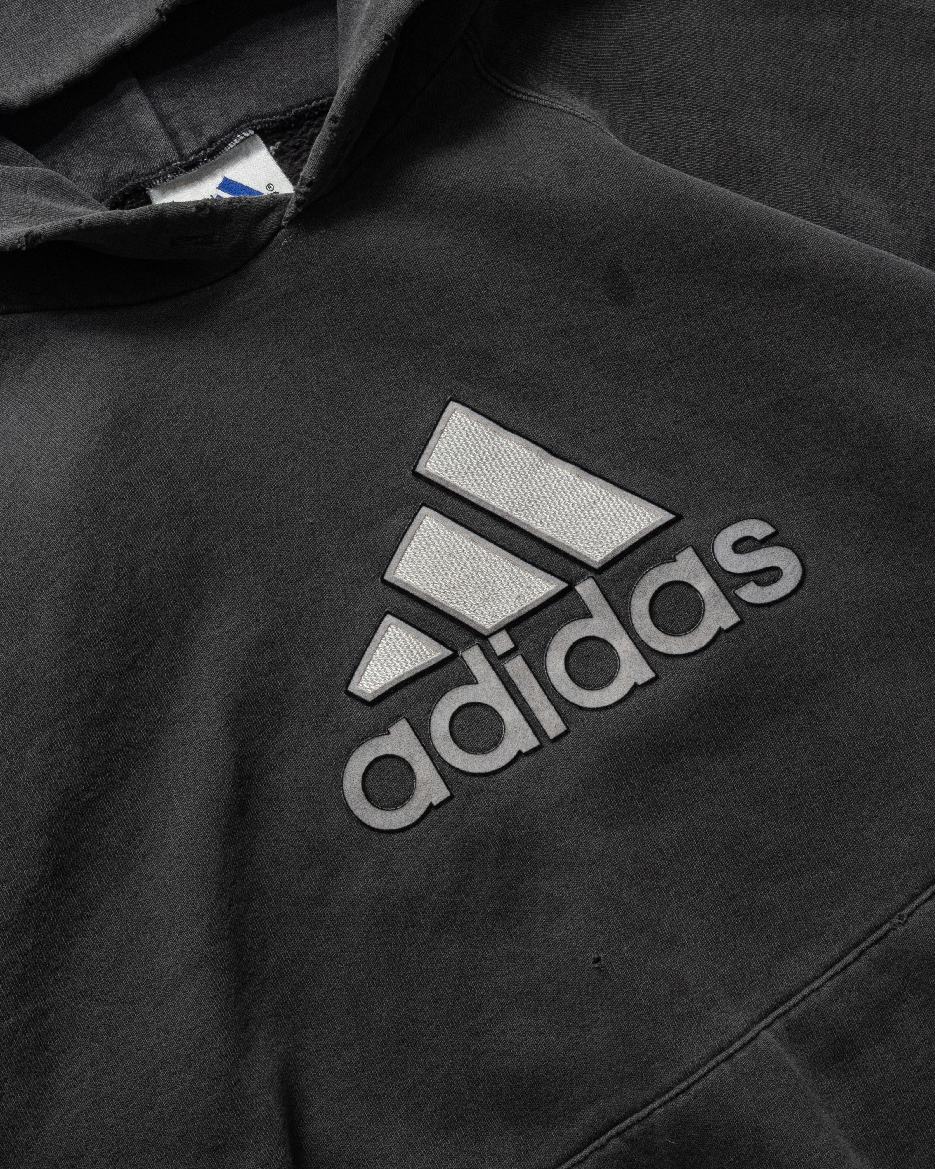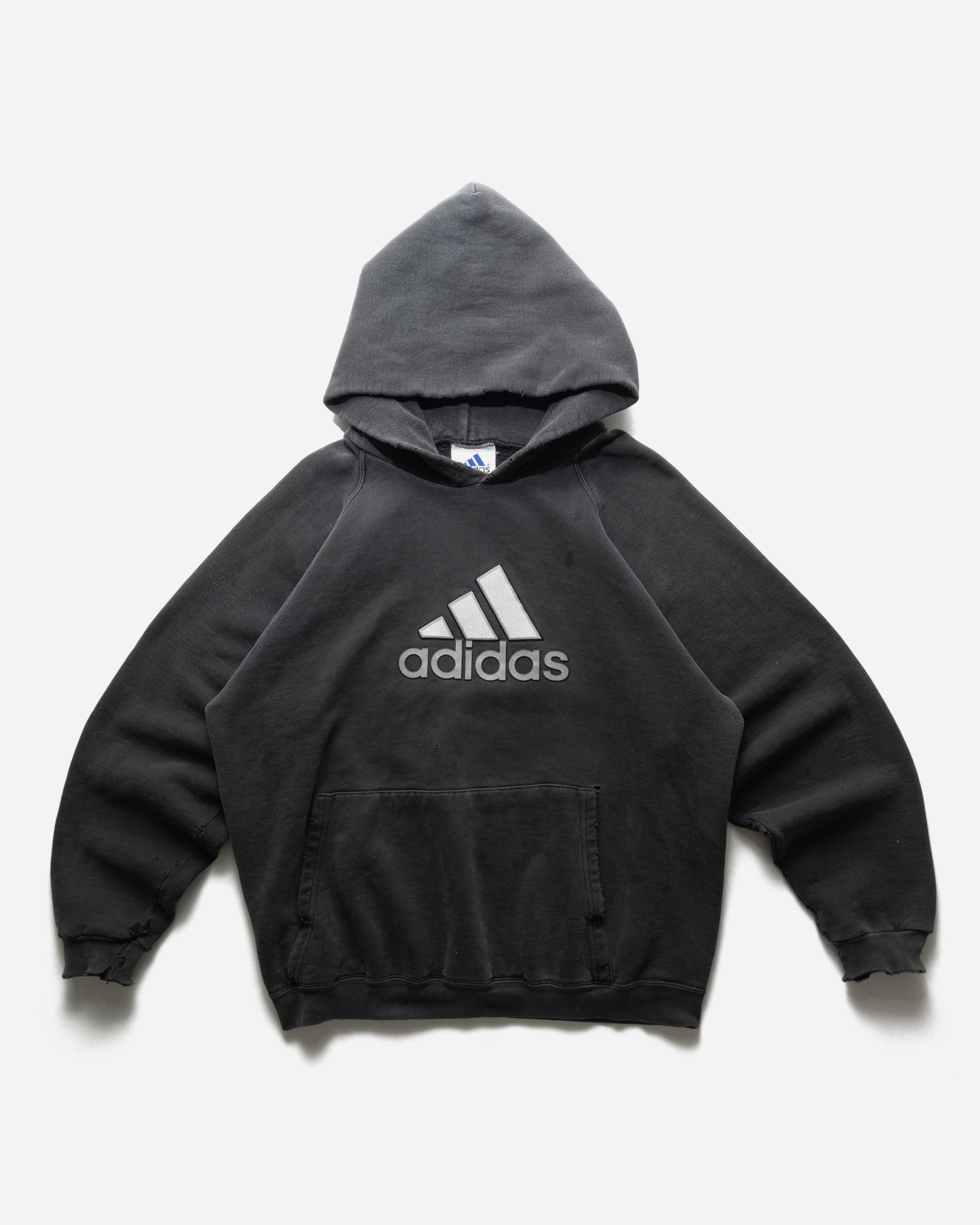 VINTAGE 1990S ADIDAS FADED BLACK HOODED SWEATSHIRT - X-LARGE is backordered and will ship as soon as it is back in stock.
