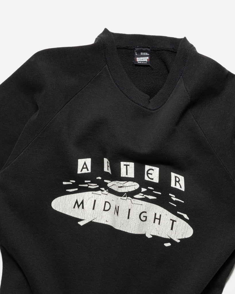 VINTAGE 1990S 'AFTER MIDNIGHT' FADED BLACK RAGLAN SWEATSHIRT - LARGE is backordered and will ship as soon as it is back in stock.