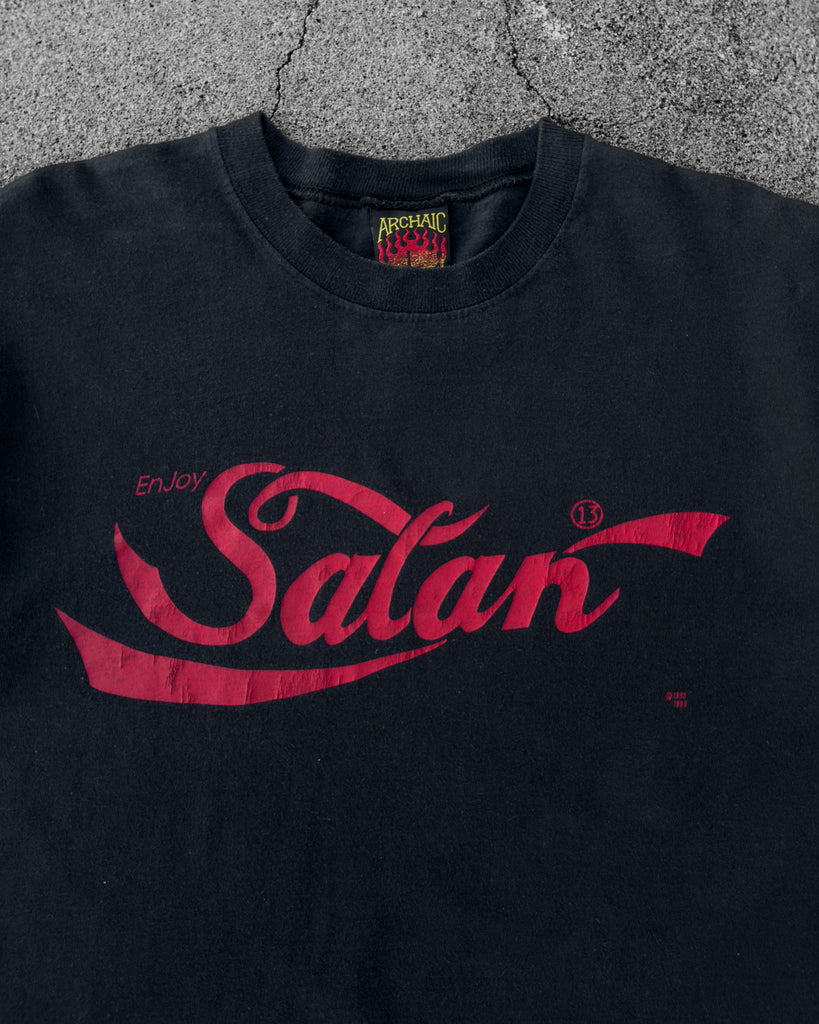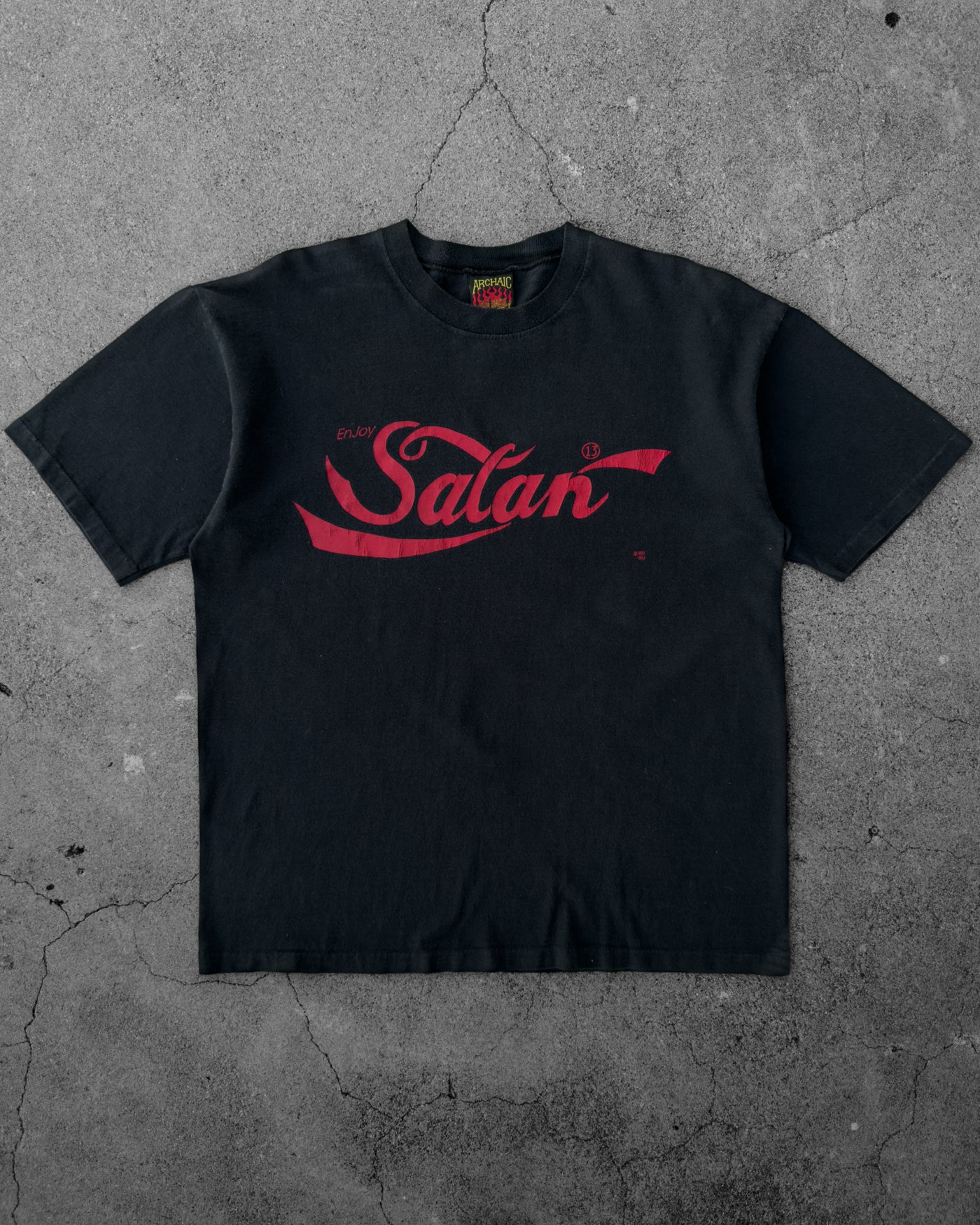 VINTAGE 1990S 'ENJOY SATAN' FADED BLACK TEE