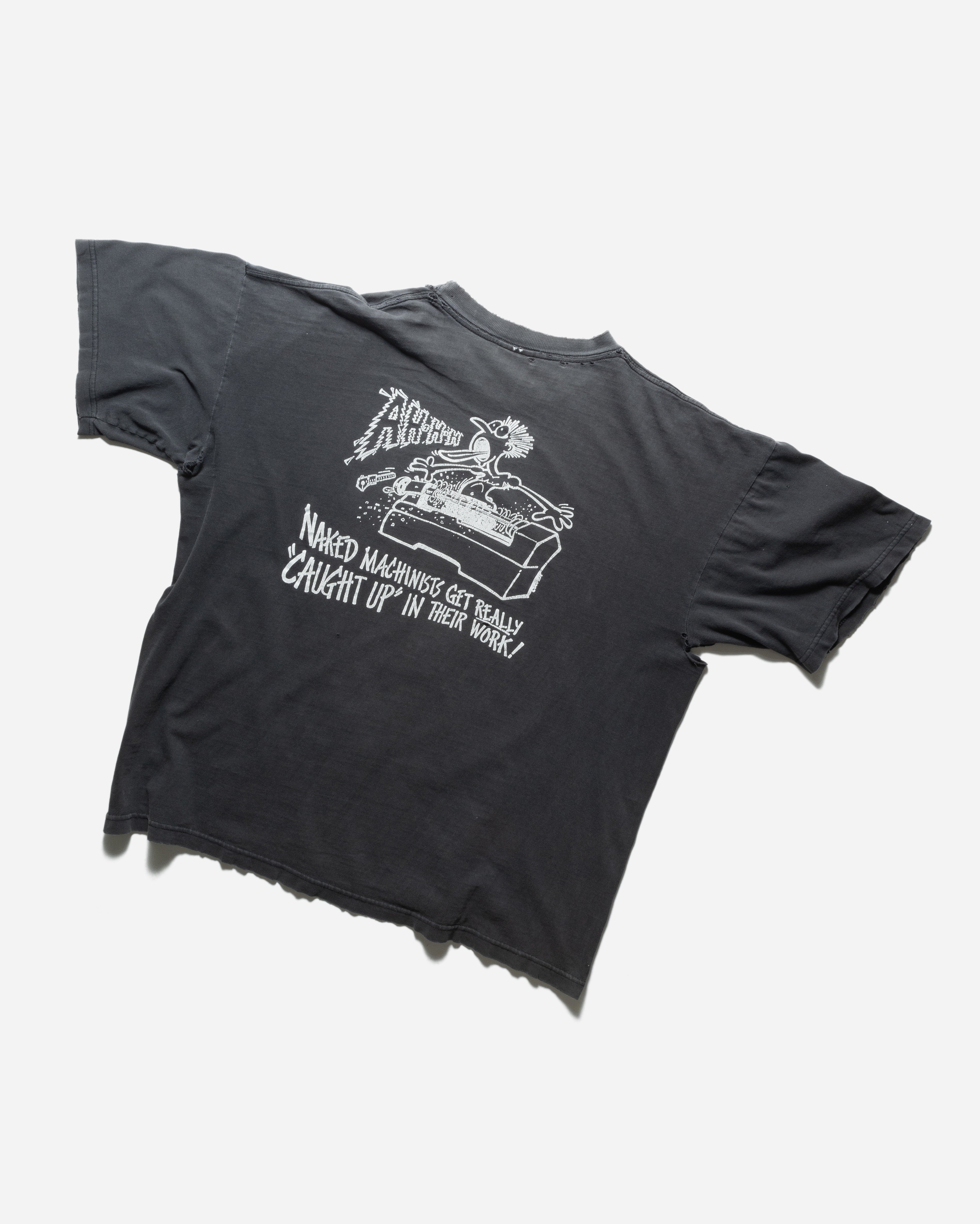 VINTAGE 1990S 'MACHINE NAKED' FADED BLACK DISTRESSED BOXY TEE - X-LARGE is backordered and will ship as soon as it is back in stock.