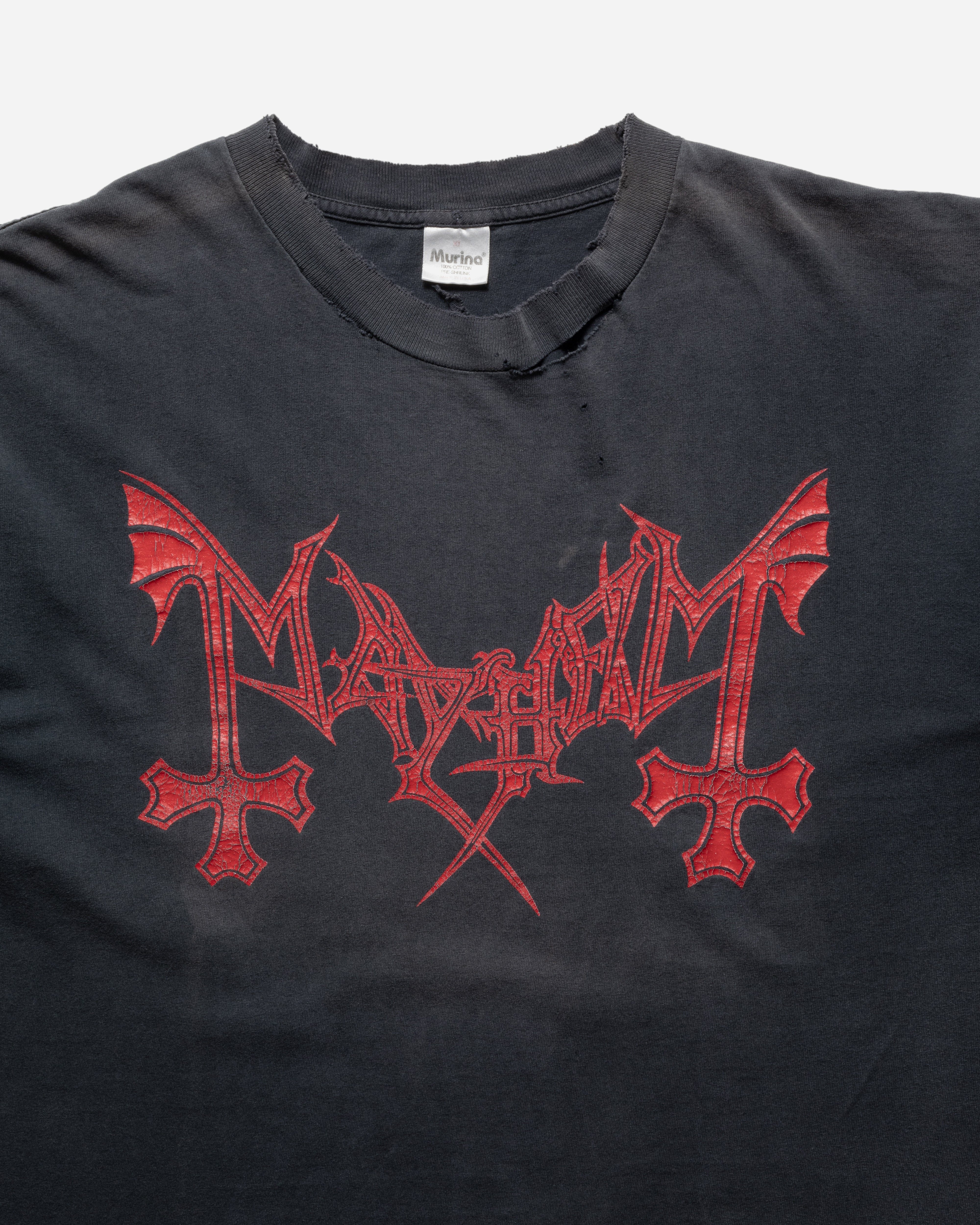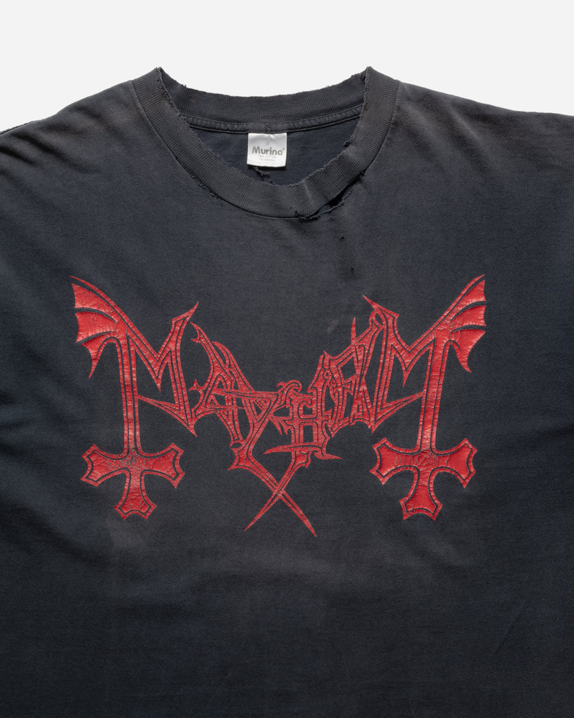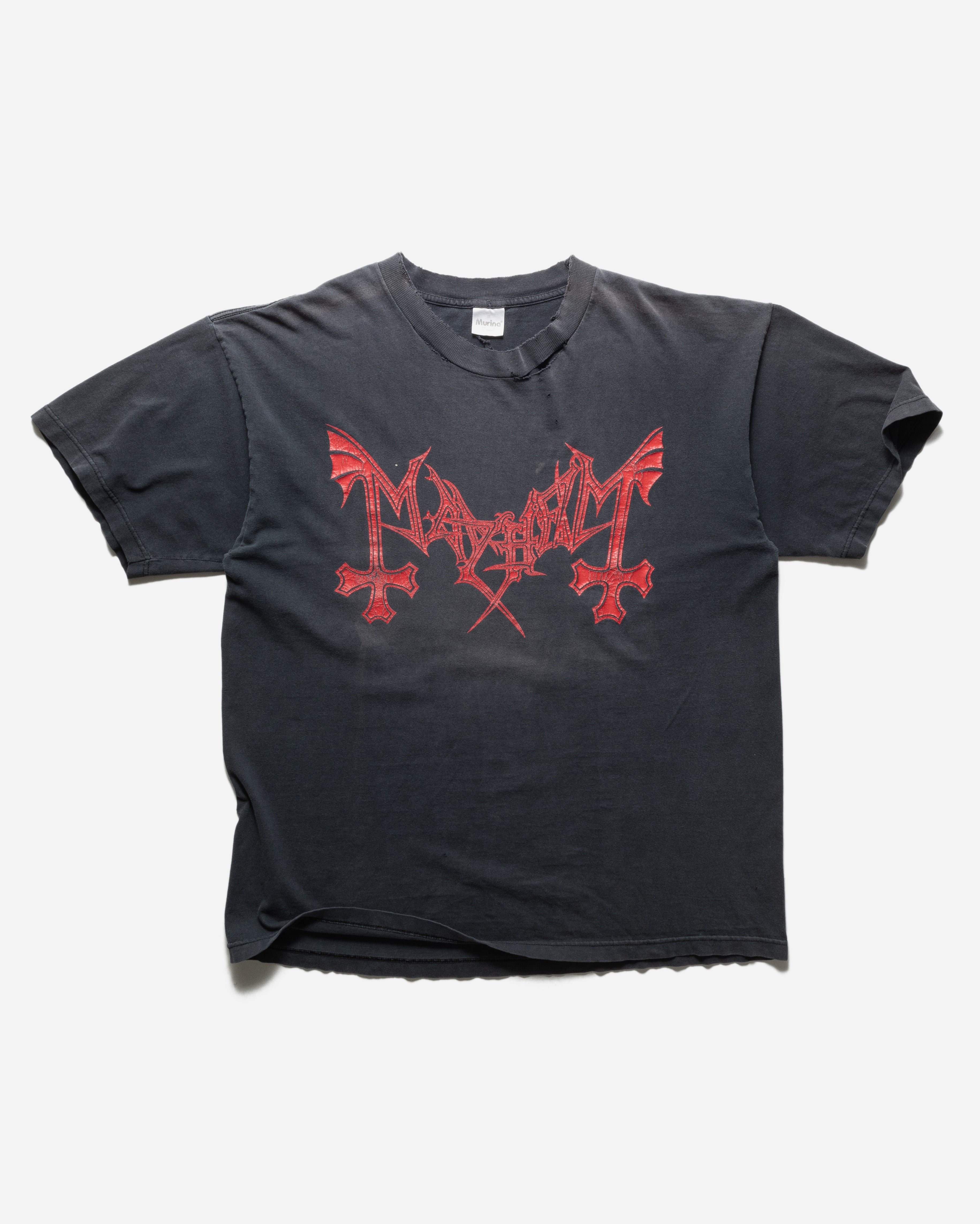 VINTAGE 1990S MAYHEM 'PURE NORWEGIAN BLACK METAL' FADED BLACK BAND TEE - X-LARGE is backordered and will ship as soon as it is back in stock.