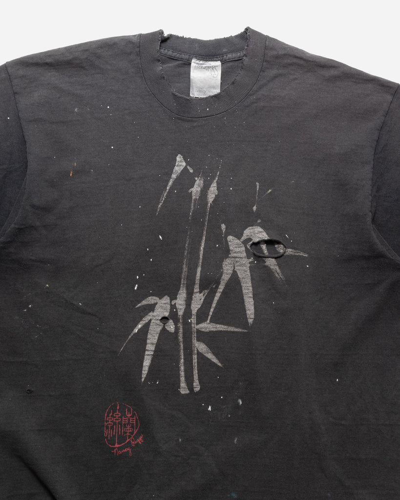 VINTAGE 1990S NANCY RUPP DISTRESSED FADED BLACK TEE