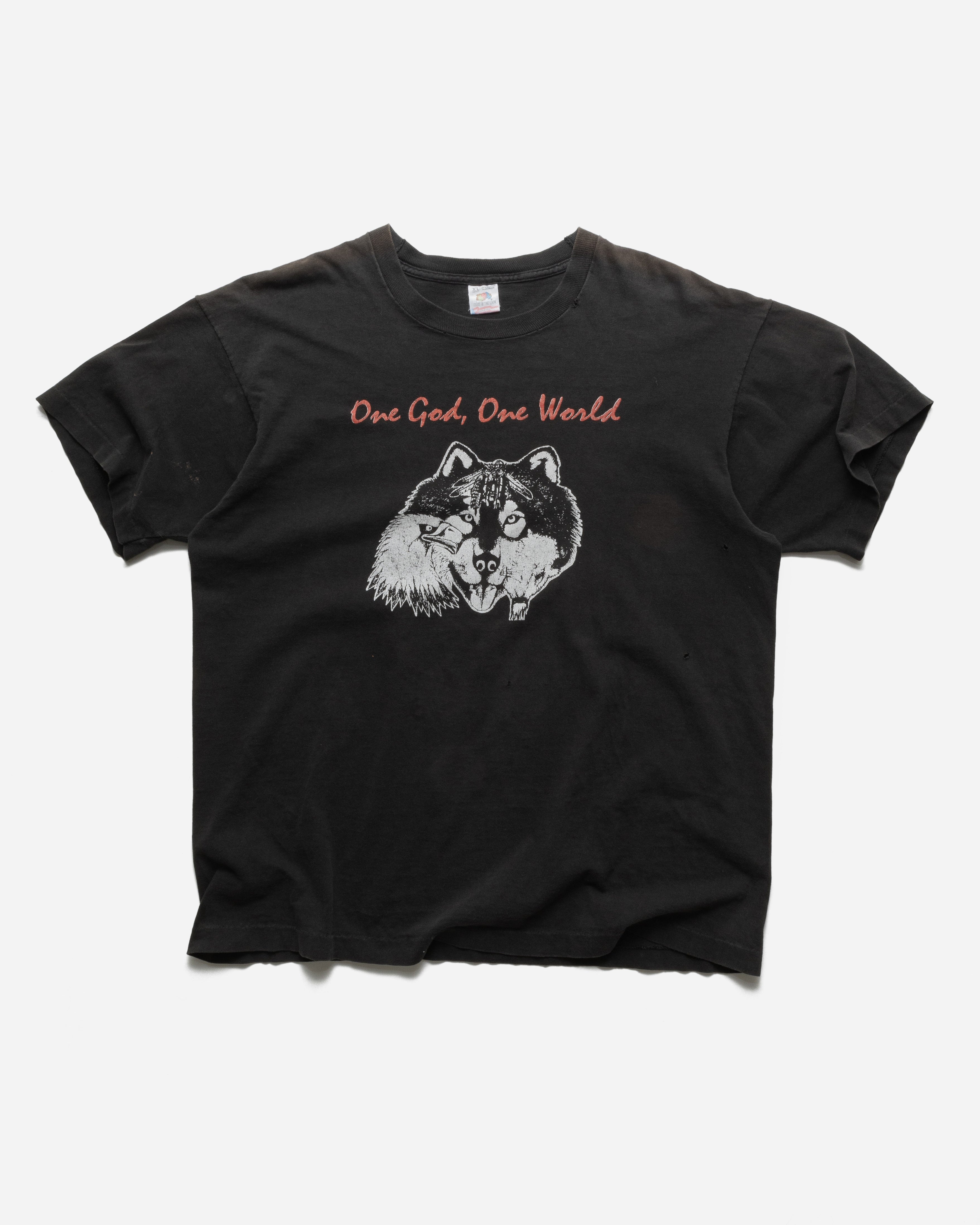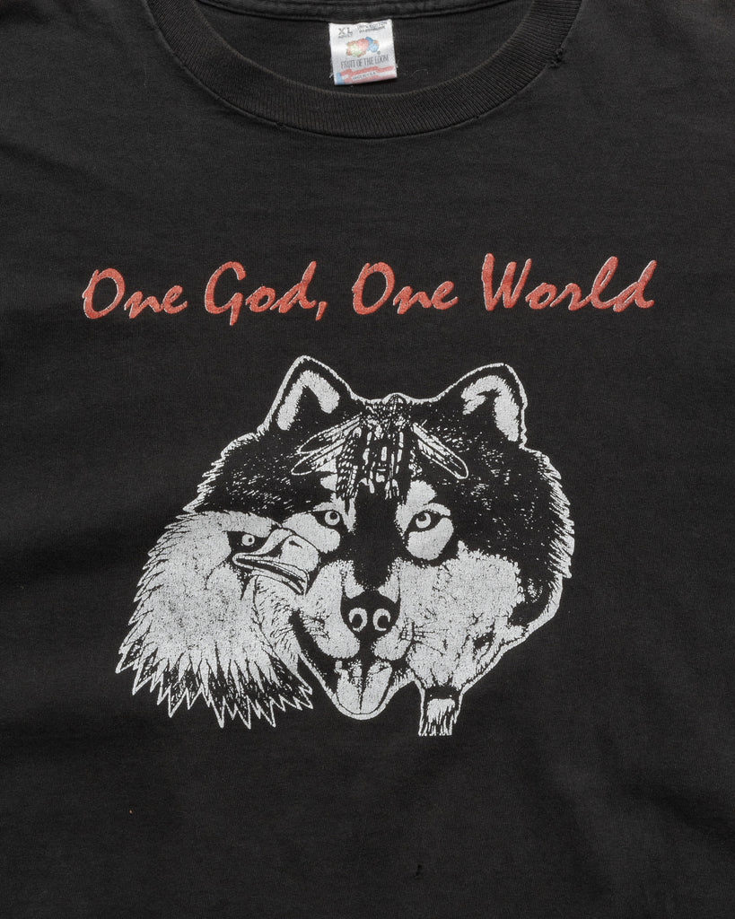 VINTAGE 1990S 'ONE GOD, ONE WORLD' FADED BLACK TEE