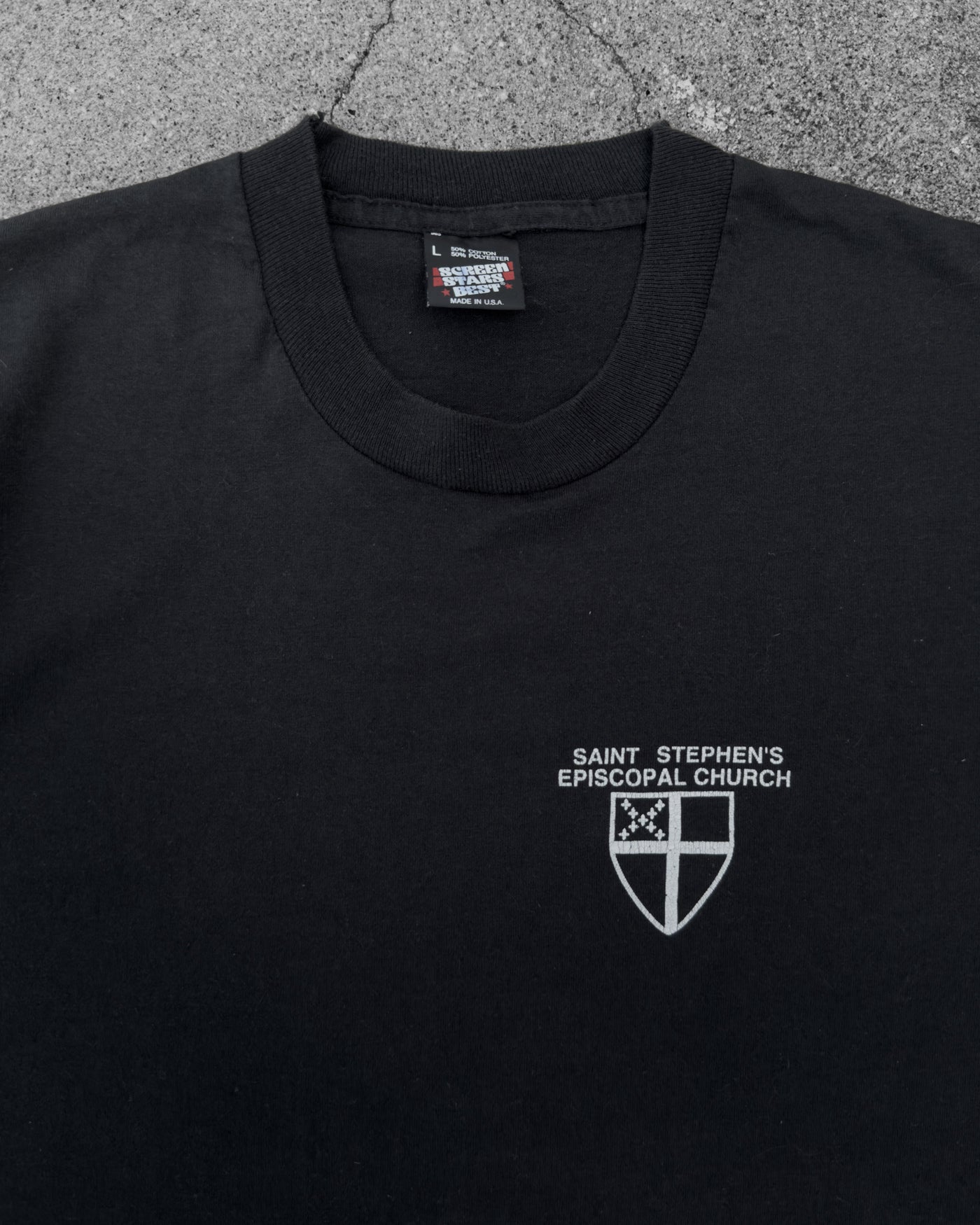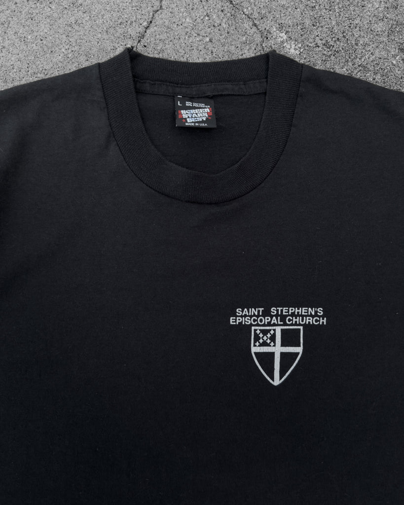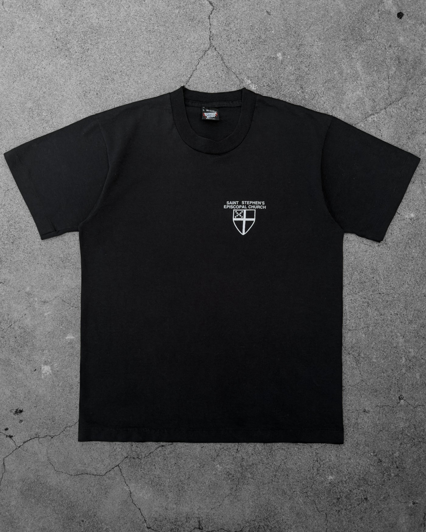 VINTAGE 1990S 'ST. STEPHEN'S EPISCOPAL CHURCH' FADED BLACK TEE
