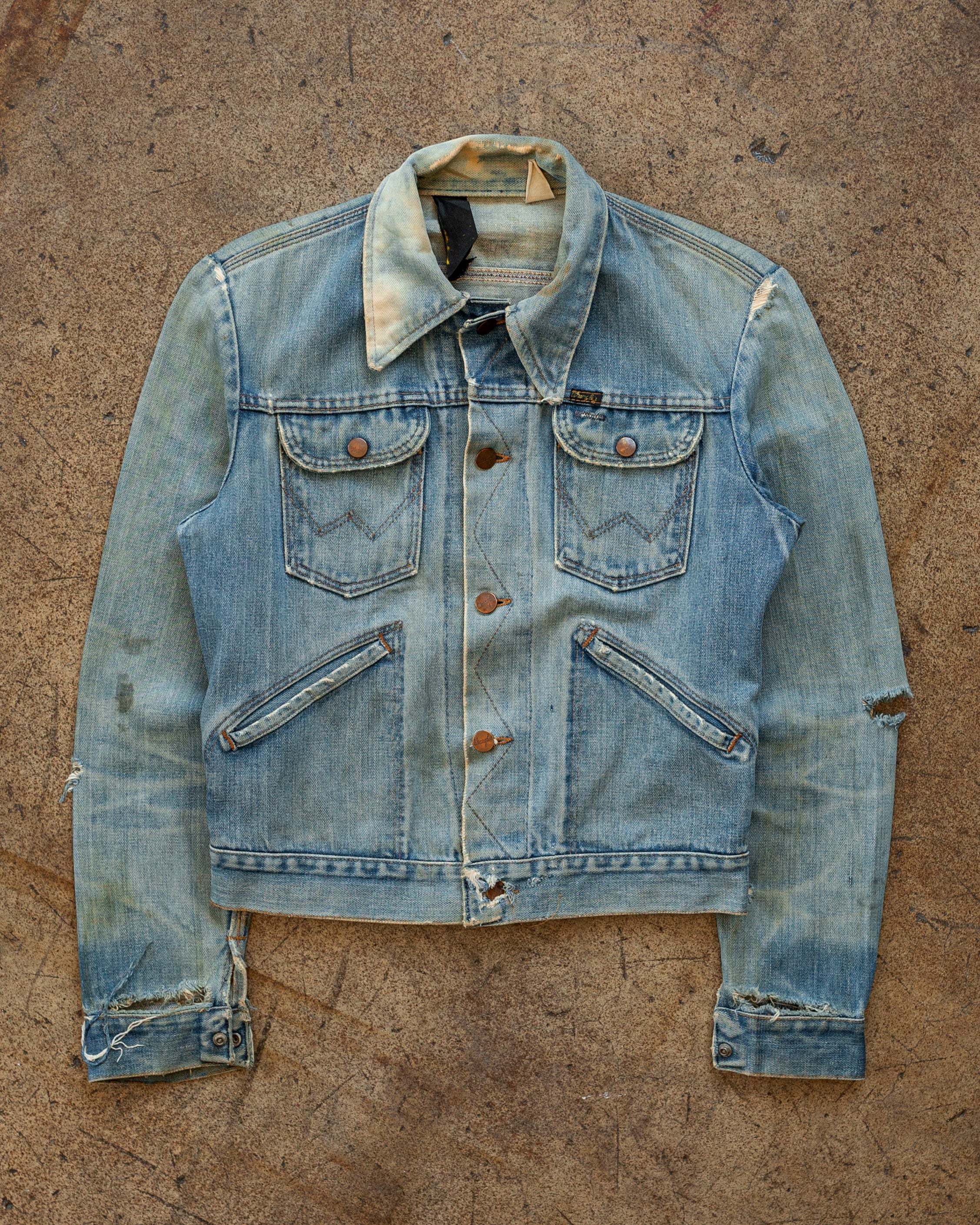 Wrangler Sun Faded Distressed Denim Trucker Jacket - 1970s